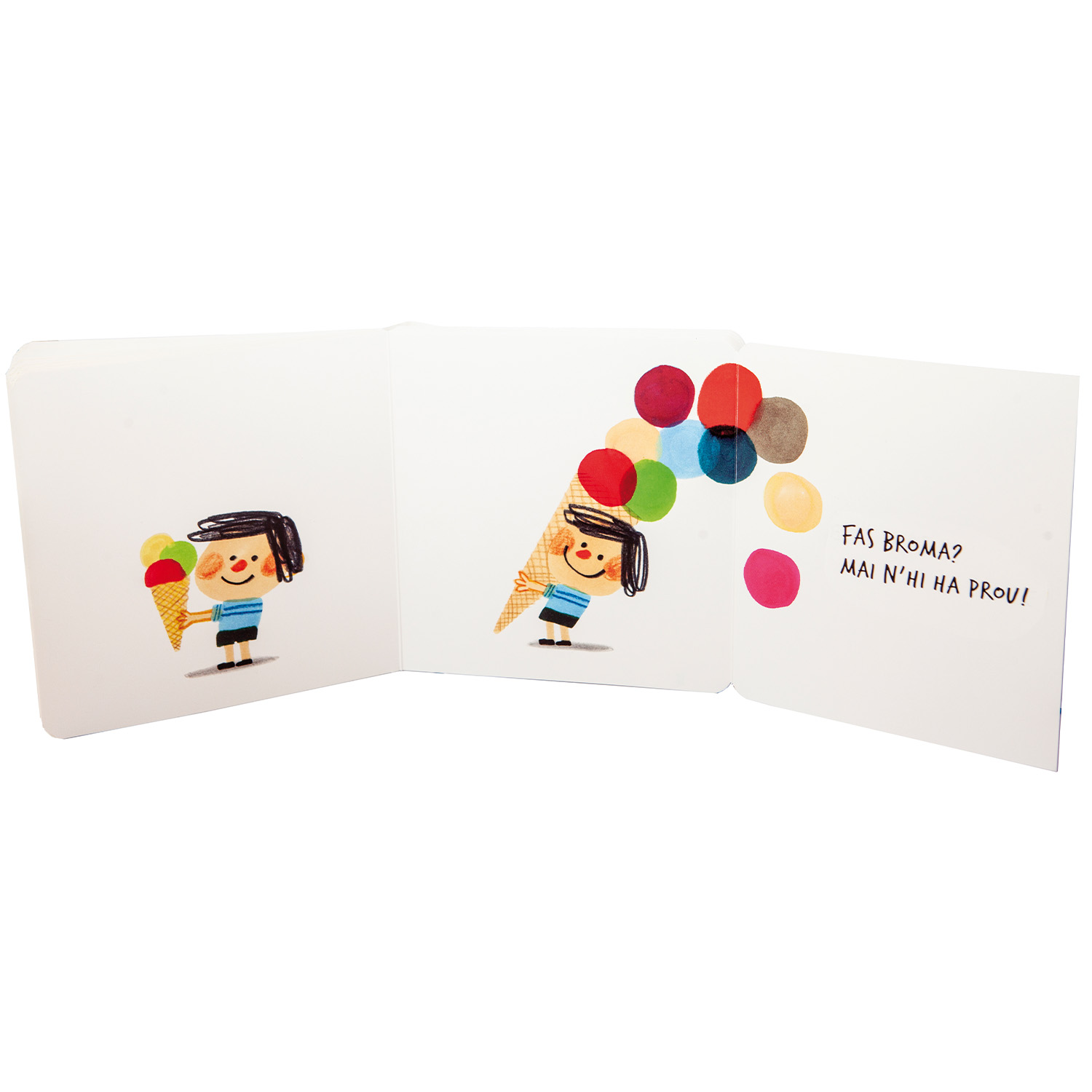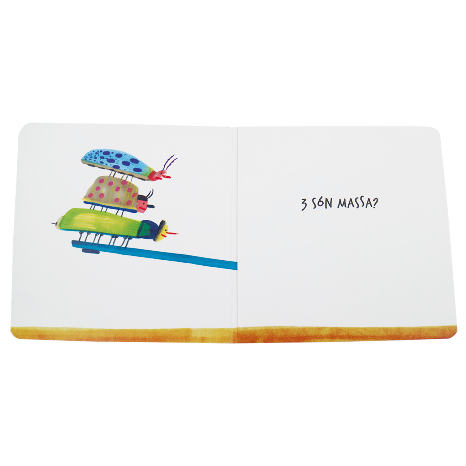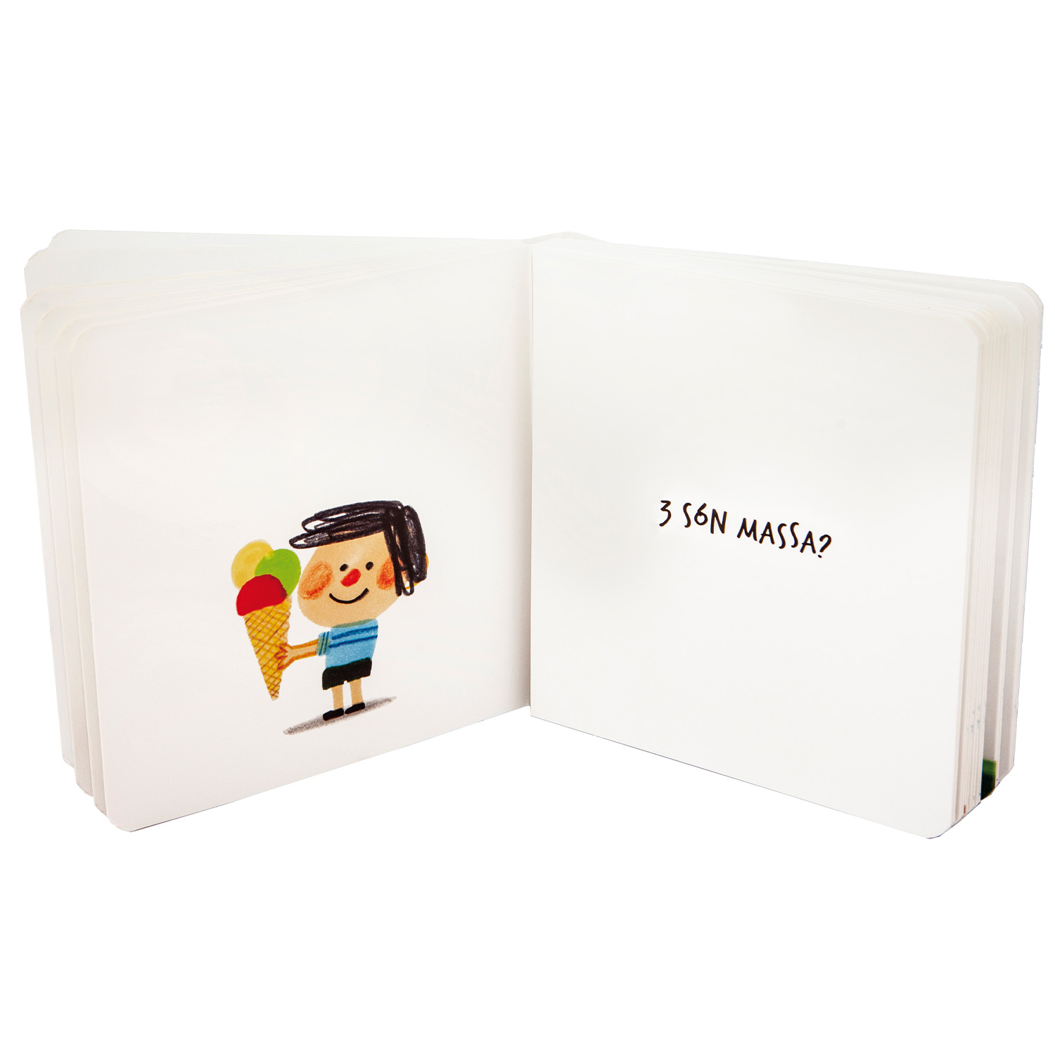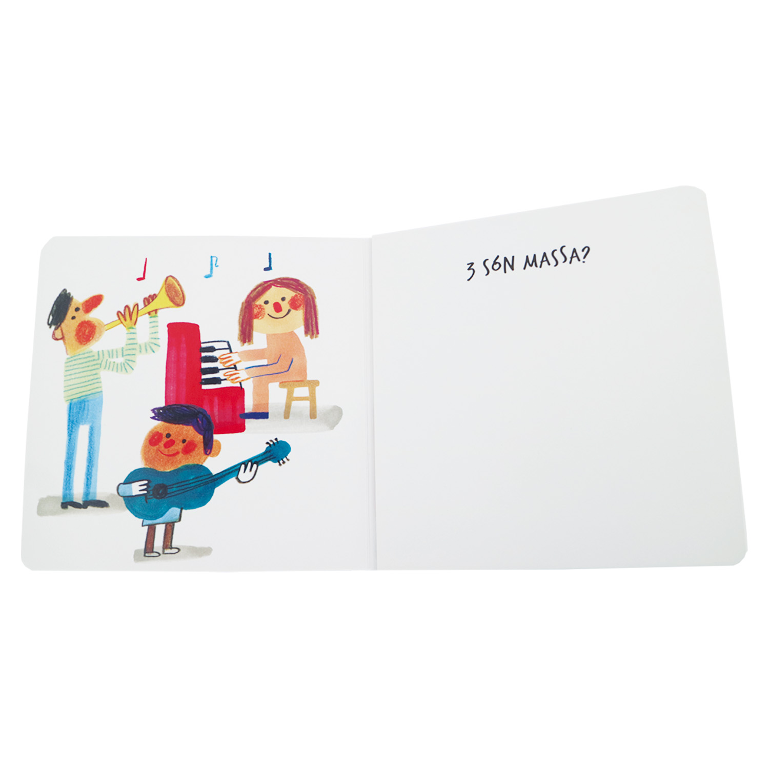 «1-2-3, de vegades és molt i de vegades, no. De vegades, una mica sembla molt. Pot semblar massa, però encara no prou. Quin mareig!» Un llibre per comptar amb els més petits, amb escenes que van des d’allò que és més evident fins al que pot semblar més absurd, i que demostra que tot depèn de com es miri. En desplegar cada solapa, hi trobarem una resposta, un gir, un acudit… i una celebració!
