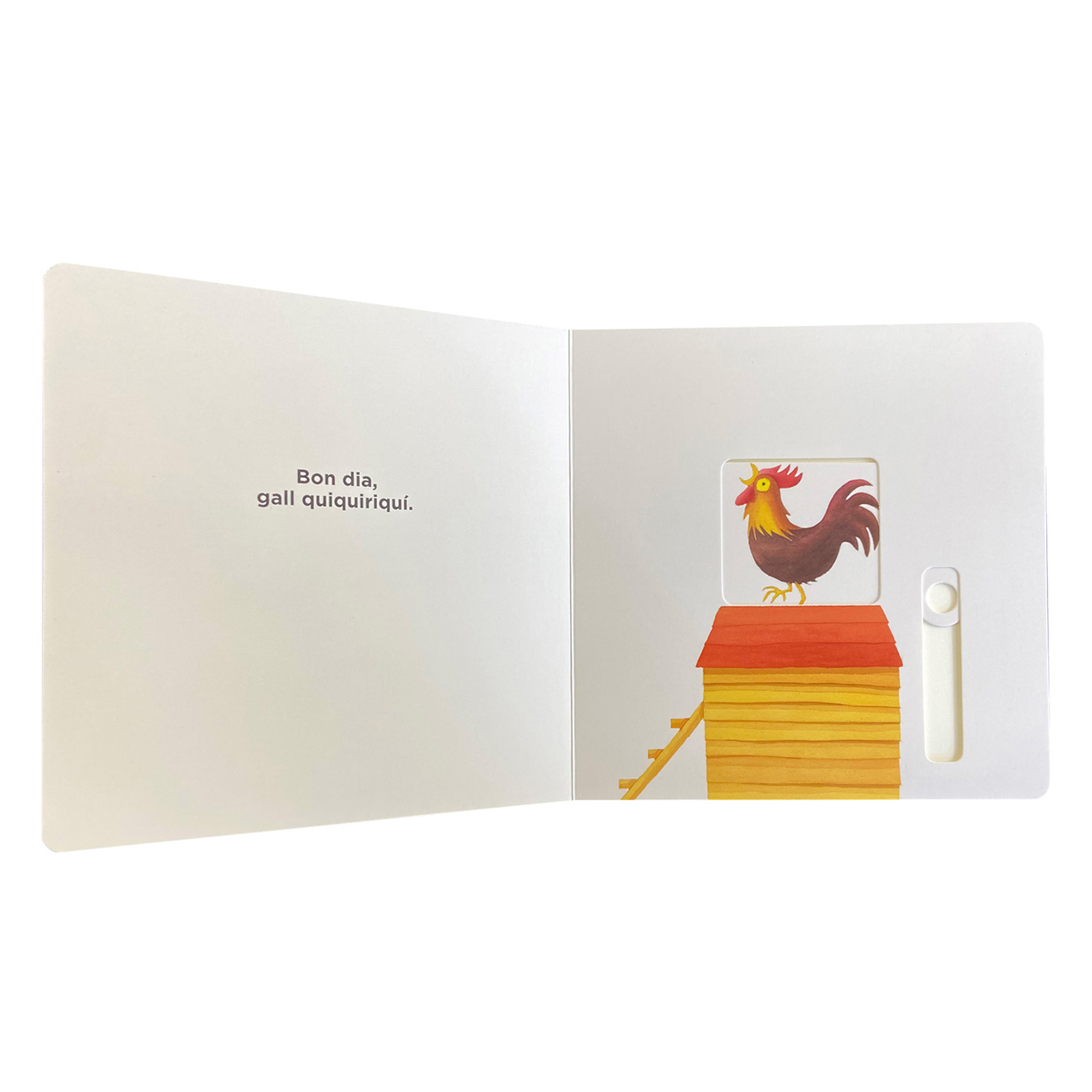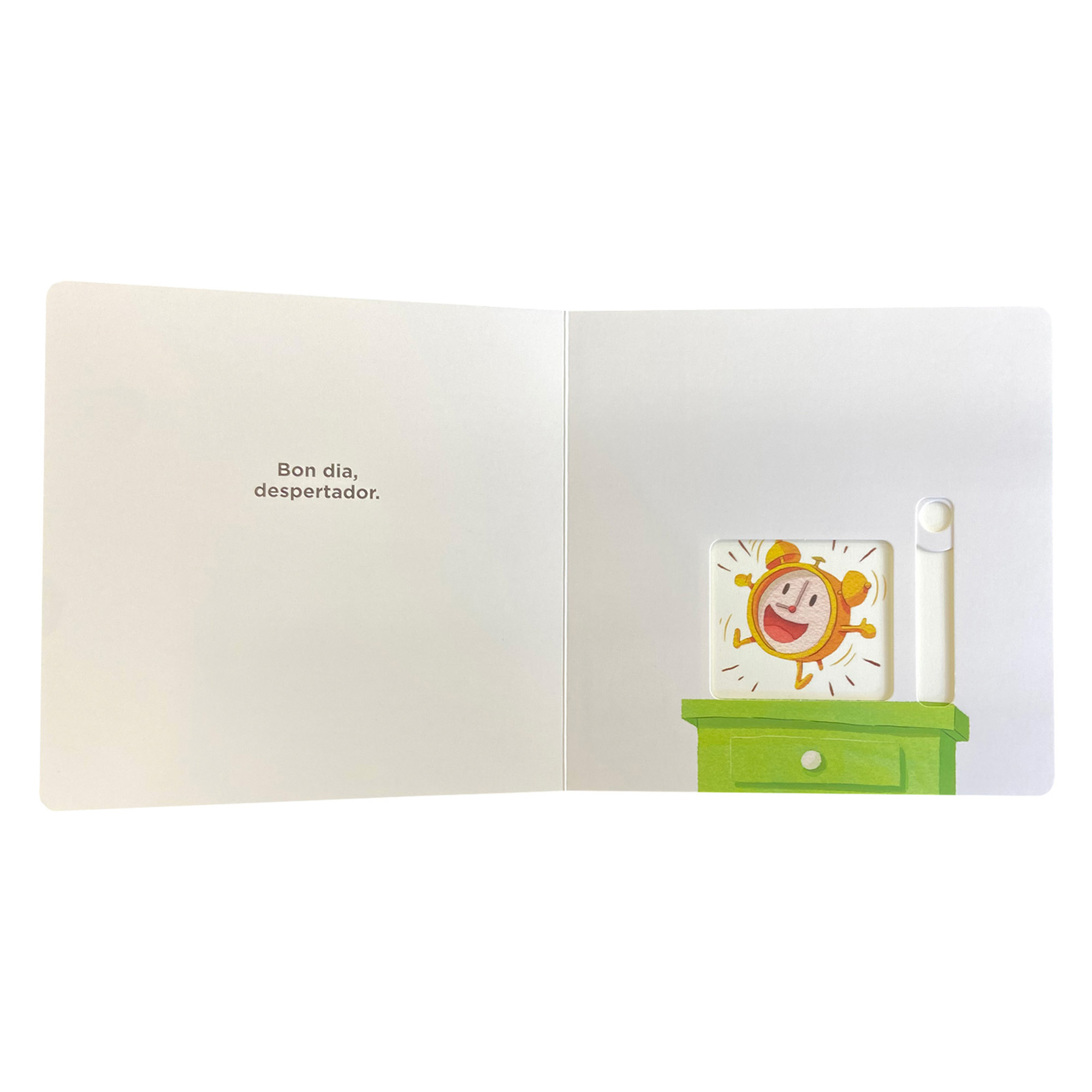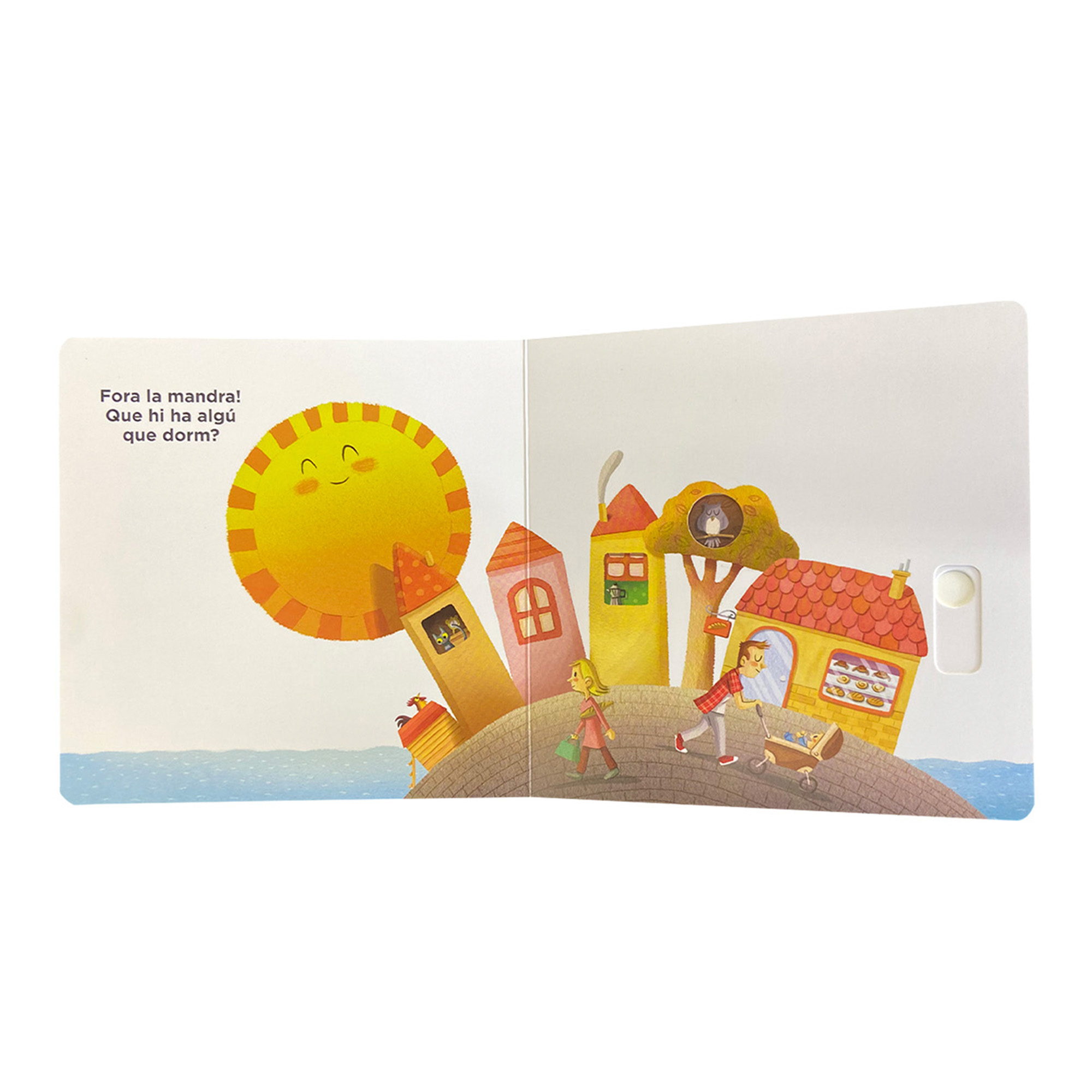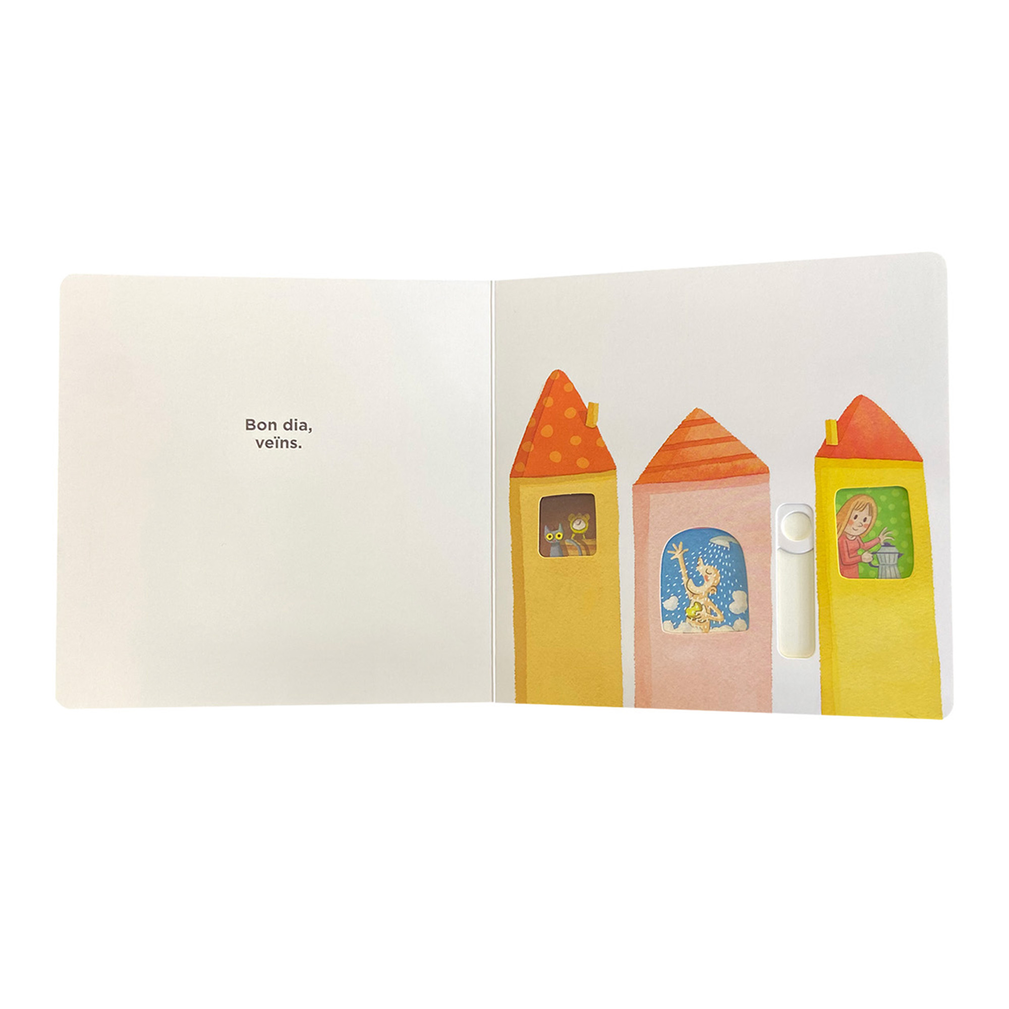 Bon dia! El sol surt per l’horitzó i comença un nou dia a la vila. És hora de llevar-se! Un títol tot cartró per aprendre les activitats i les rutines diàries. Amb il·lustracions del reconegut il·lustrador Xavier Salomó, el llibre captivarà els més petits quan els seus dits facin lliscar les llengüetes cap amunt perquè tothom es desperti.