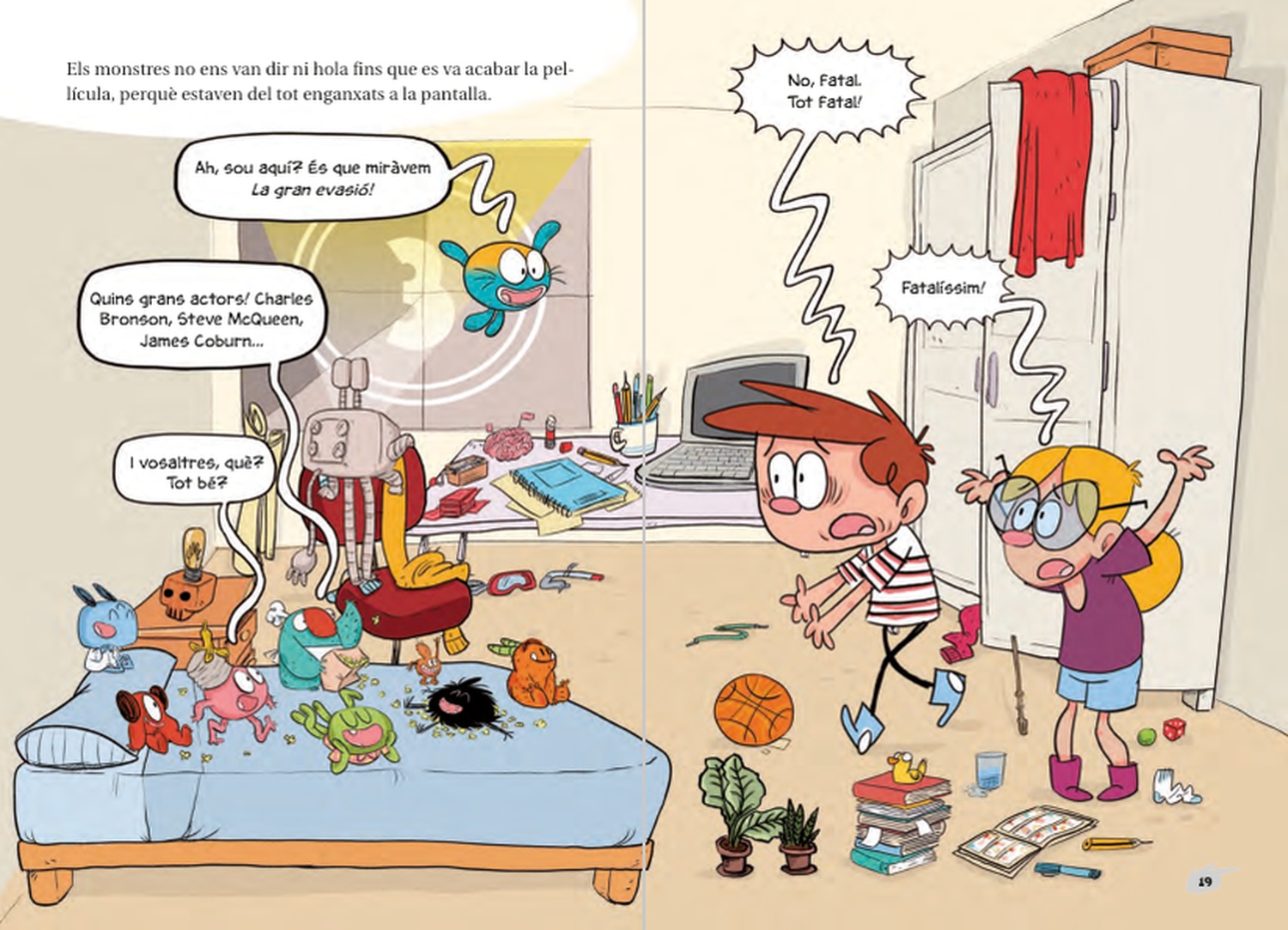 Hola! Soc l’Agus Pianola i, encara que no us ho cregueu, visc amb una colla de monstres (dels bons, eh!). Un d’ells, el Sr. Flat, és el meu millor amic. La meva veïna, la Lídia, sempre té idees genials. Junts intentem aturar les bogeries del Dr. Brot i el seu ajudant Nap. I ara no tinc ni idea de com ens en sortirem, d’aquesta. El Col·lectiu 541 ha convençut tothom a Galerna que hi ha llibres que s’han de destruir. Peter Pan, Blancaneu, La Ventafocs, Les aventures de Tom Sawyer… Tots estan en perill! Ens ajudes a salvar-los?