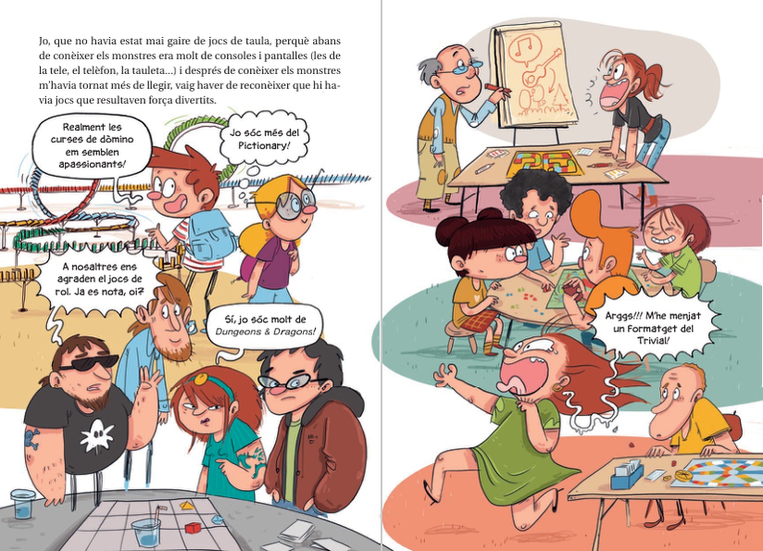 El Dr. Brot que s’ha empescat un torneig de jocs de taula per emportar-se ell solet tots els premis…, fent trampes, és clar! Quina paciència! Sort en tenim, de l’Emmo, que a més de monstre és una màquina!