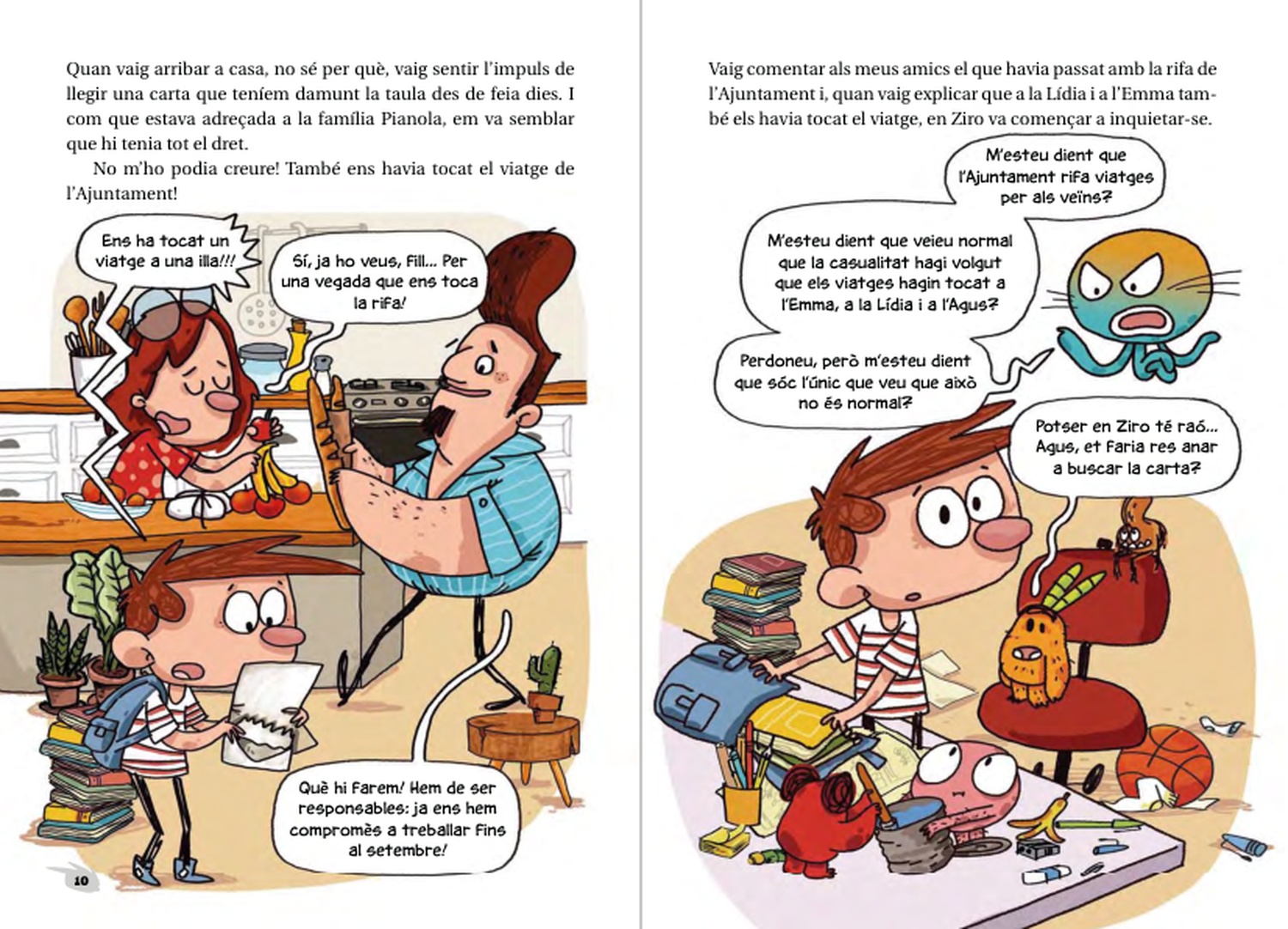 Ep, hola! A hores d’ara ja hauries de saber que sóc l’Agus Pianola i que convisc amb una colla de monstres. Tots junts ens ho passem superbé llegint i vivint les aventures més esbojarrades que et puguis imaginar. I també lluitant contra el mal del Dr. Brot i el cap de pardals del seu ajudant Nap! Ara resulta que a l’Emma, a la Lídia i a mi ens ha tocat un viatge meravellós a una illa deserta! Quina casualitat, oi? Doncs jo sospito que aquesta illa no és tan deserta com ens la pinten… Ai, no sé què faríem sense amics tan enginyosos com el nostre estimat Emmo!