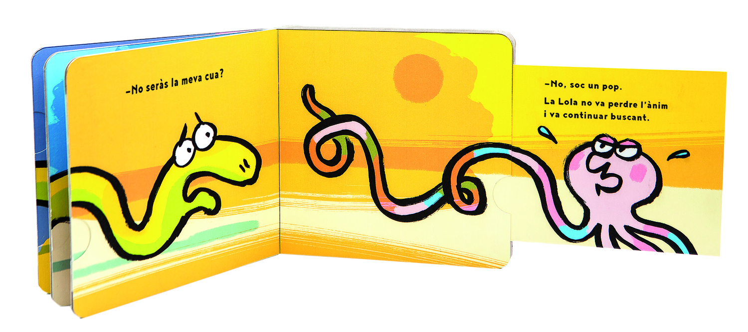 La Lola és una serp molt despistada. Es distreu amb tanta facilitat que fins i tot un dia pensa… que ha perdut la cua! Estira les llengüetes per descobrir on s’amaga la cua de la Lola!