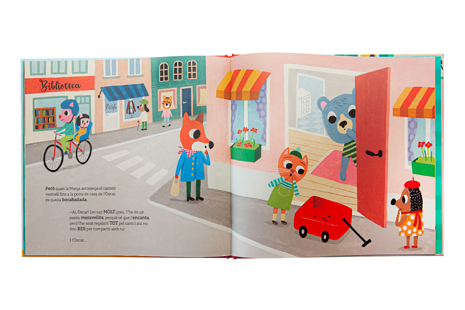 Coneixeu la Marga? És molt alegre i atenta i sempre busca la manera d’arreglar les coses. És la millor amiga que podríem tenir! Avui la Marga ha fet un pastís meravellós per dur a casa del seu amic Òscar, però, quan hi arriba, i després d’haver ajudat tots els seus amics pel camí, li quedarà encara pastís per compartir?