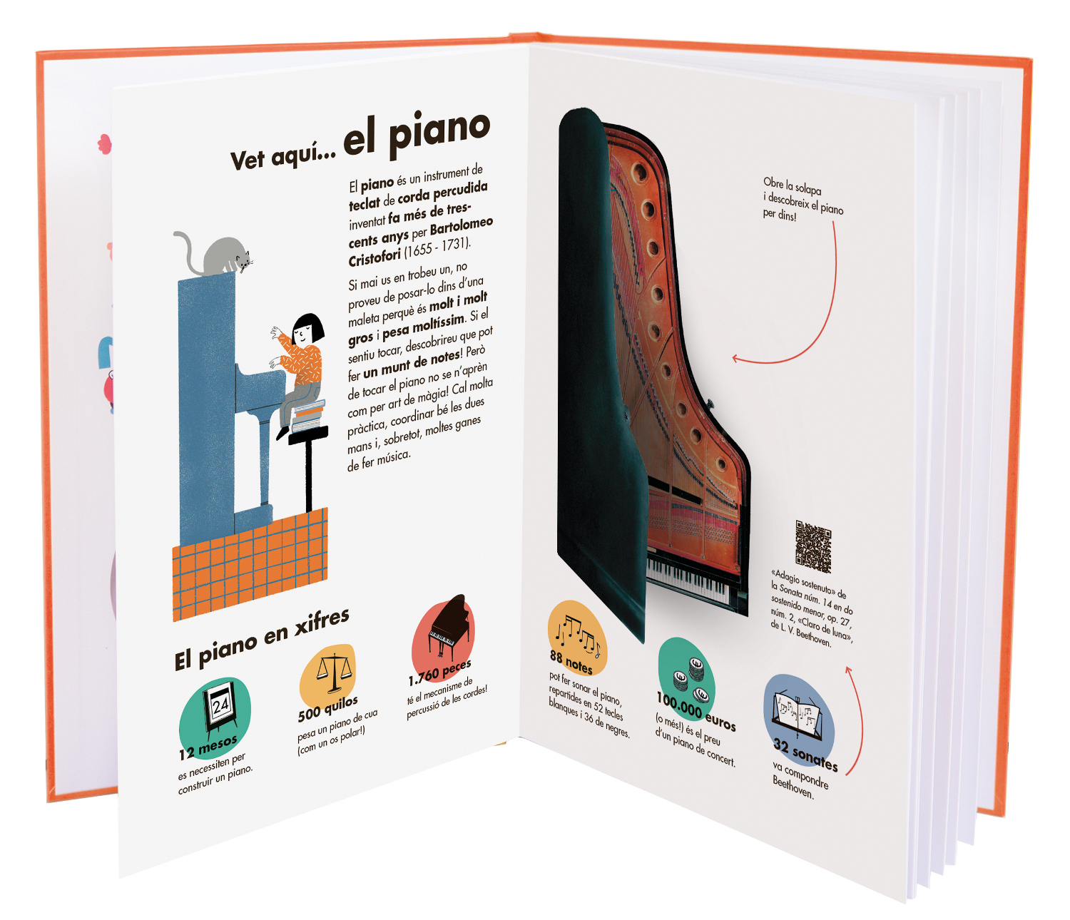 El piano, quin instrument tan extraordinari! El pots trobar al menjador d’algunes cases, a la teva escola de música, en una sala de concerts… o dins d’aquest llibre! Mira, escolta i descobreix tots els misteris d’aquest instrument que es toca amb les mans i els peus.. Obre els ulls i destapa’t les orelles perquè ja… Sona el piano!