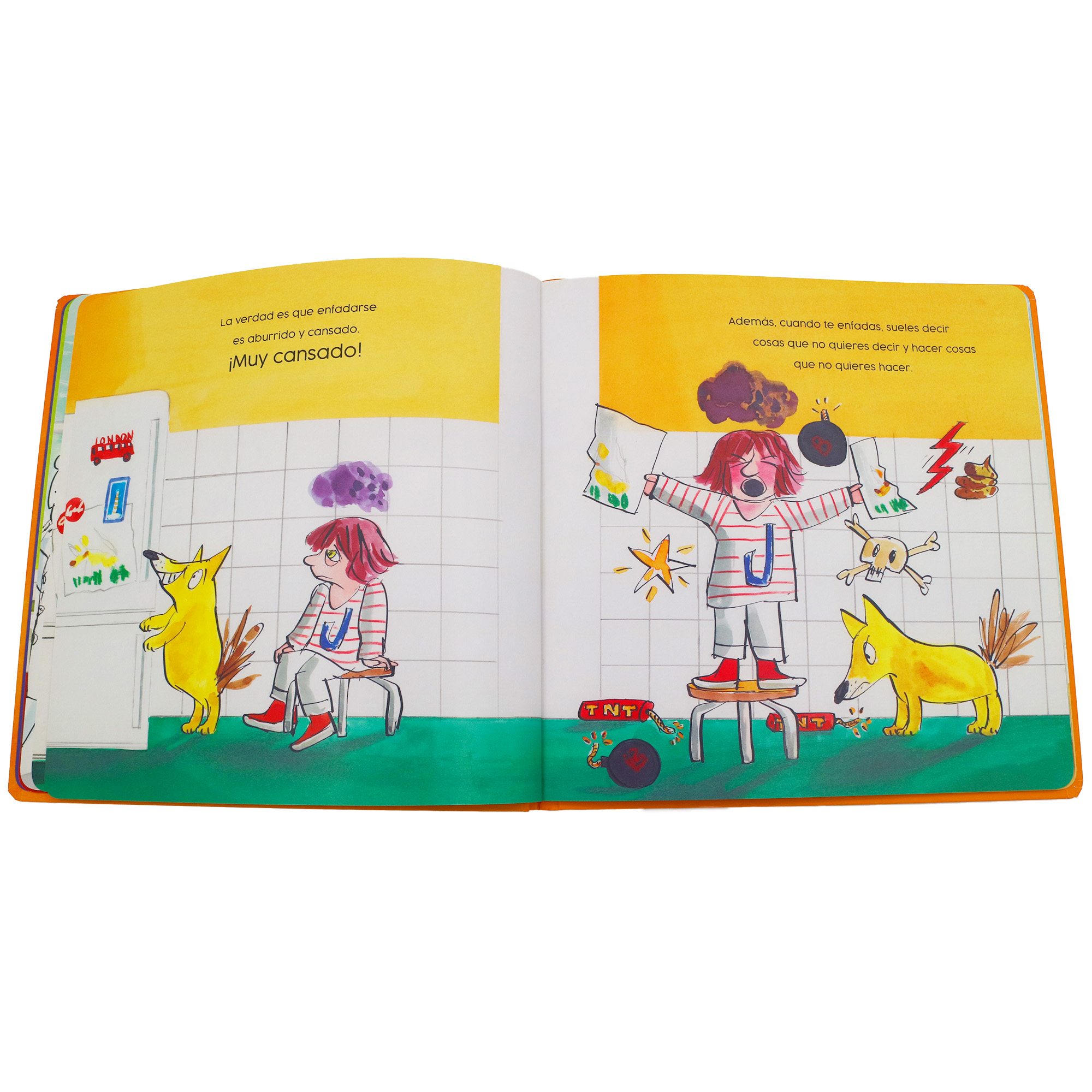 Strong emotions such as anger, rage and frustration can be difficult for kids to manage. The new story by Jaume Copons illustrated by Emilio Urberuaga will help kids recognize and understand their negative feelings. As the protagonist of the book says we all get angry at some point in our lives. Sometimes we can’t avoid feeling grumpy or being cranky. But we can take a deep breath, count to 10, think of something nice to calm down. Or even better, use the brand new powerful device at the end of the book. Just give a try!