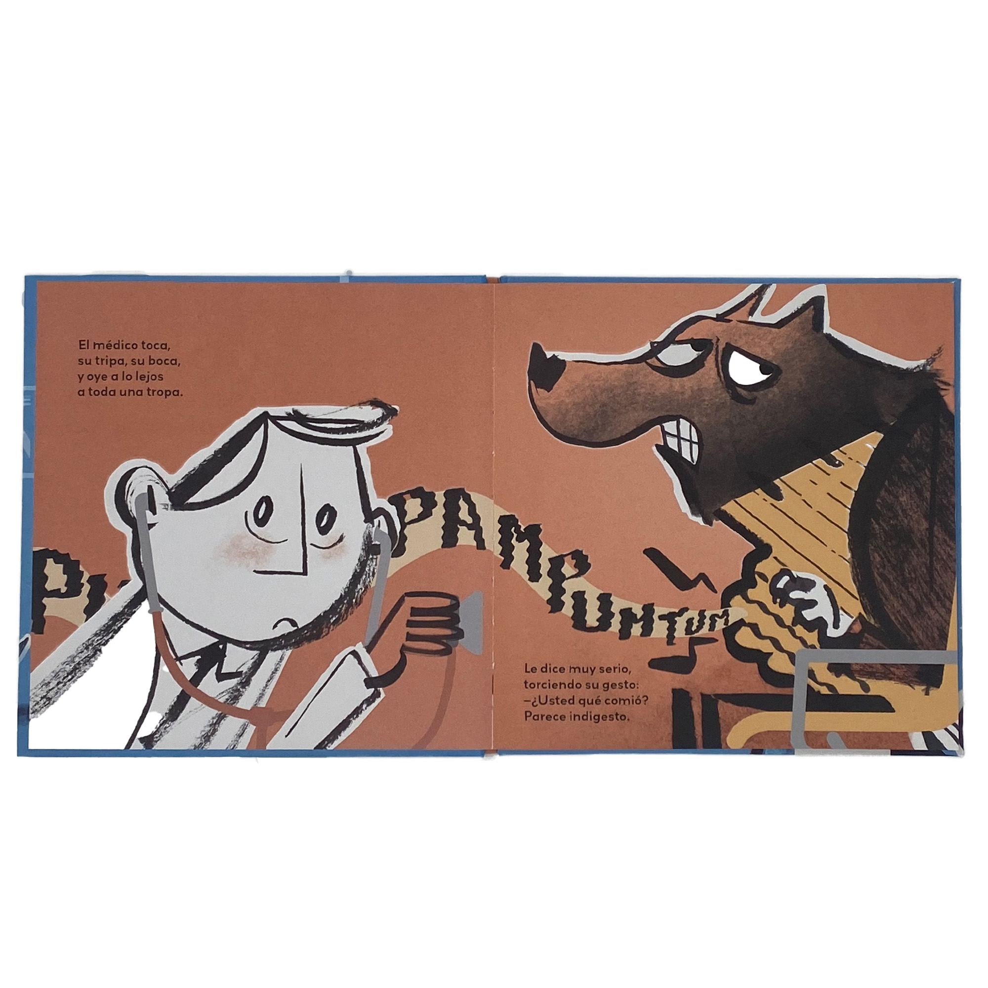 Once upon a time there was a Bad Wolf who was feeling belly pain without having eaten nothing. That’s what he said to the Doctor…. But don’t feel pity on him. Discover why his stomach hurts so badly behind every flap. Readers will find fairies, grandmas, little pigs, kids and all the Little Red Riding Hood the Bad Wolf had eaten… A tribute to fairy tales filled with loads of humor to introduce children into the world of lift-the-flap books.