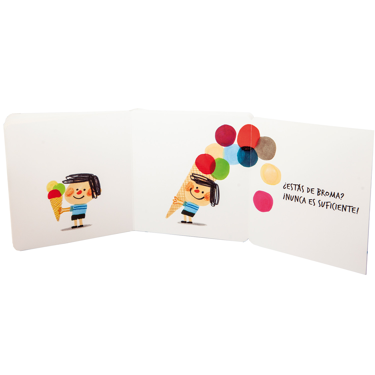 «1-2-3, a veces, es mucho y a veces, no. A veces, un poco parece mucho. Puede ser demasiado, pero no lo bastante. ¡Qué mareo!» Un libro para contar con los más pequeños con escenas que van de lo obvio a lo absurdo, y que demuestra que todo depende de cómo se mire. Desplegando cada solapa se encuentra una respuesta, un giro, un chiste… ¡y una celebración!