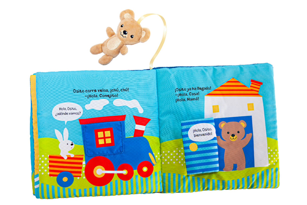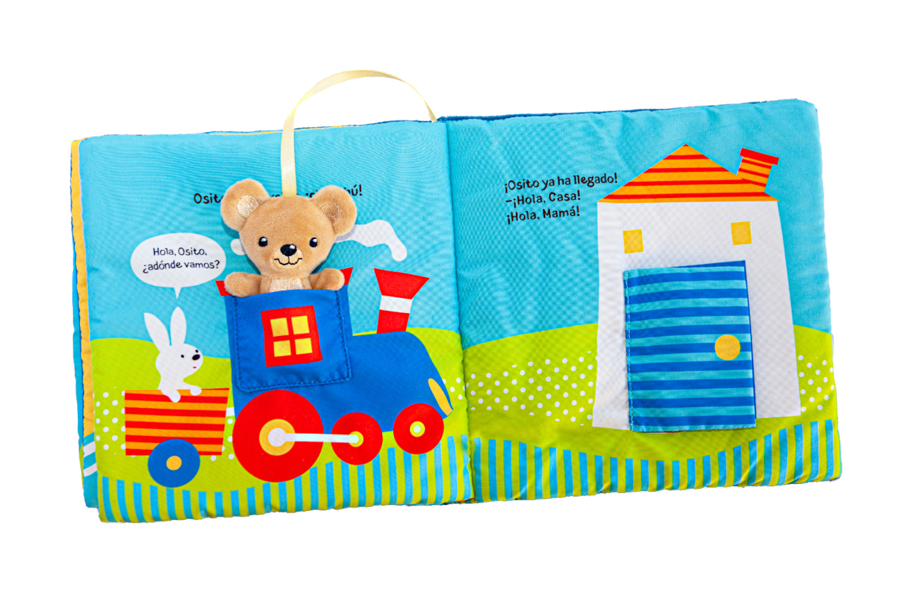 ¿Adónde vas, Osito? Acompáñalo con tu bebé en un viaje en tren, en barco o en avión hasta llegar a casa. Un libro de tela, con cubiertas de terciopelo y con un pequeño muñeco para los momentos de juego de los más pequeños.