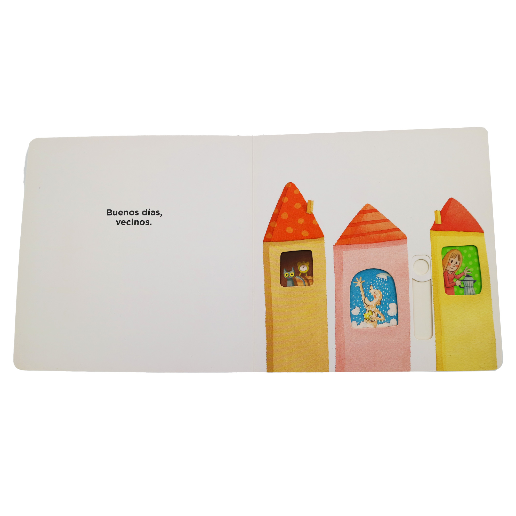 ¡Buenos días! El sol asoma por el horizonte y empieza un nuevo día. ¡Es hora de levantarse! Un título todo cartón para aprender las actividades y rutinas diurnas. Con ilustraciones del reconocido ilustrador Xavier Salomó, el libro cautivará a los más pequeños cuando sus dedos deslicen las lengüetas hacia arriba, haciendo que todo el mundo se despierte.