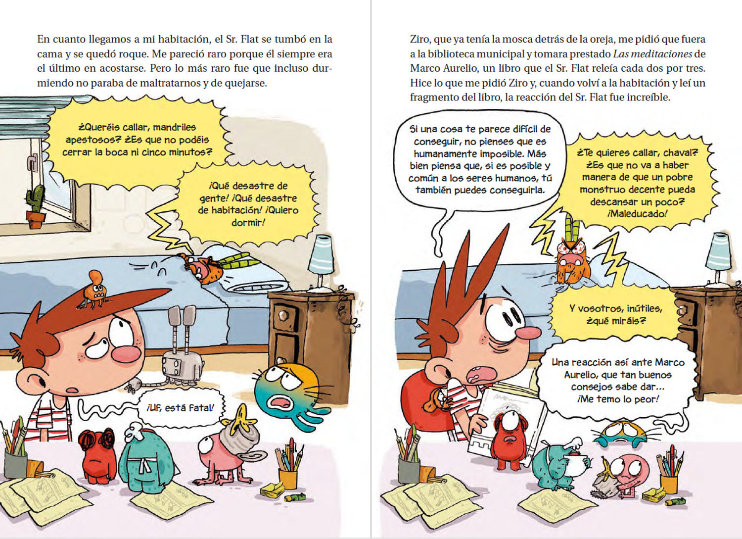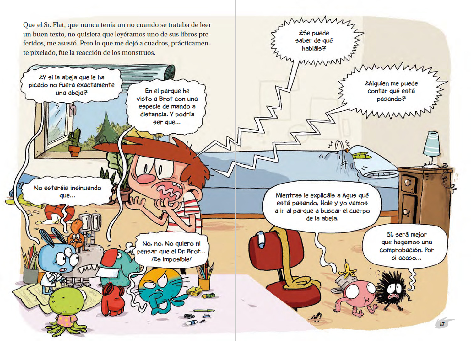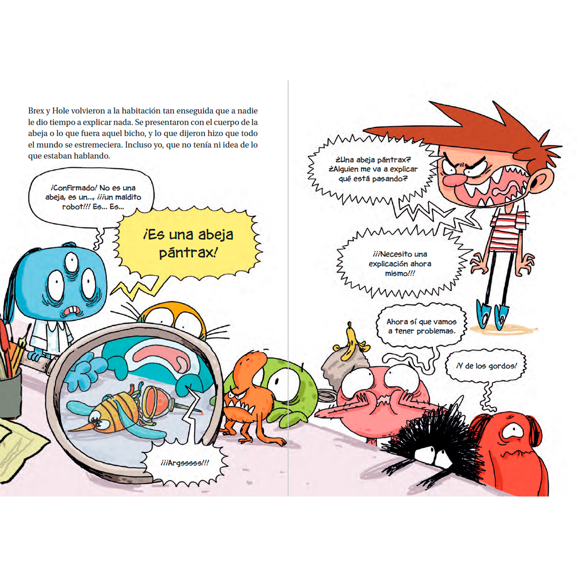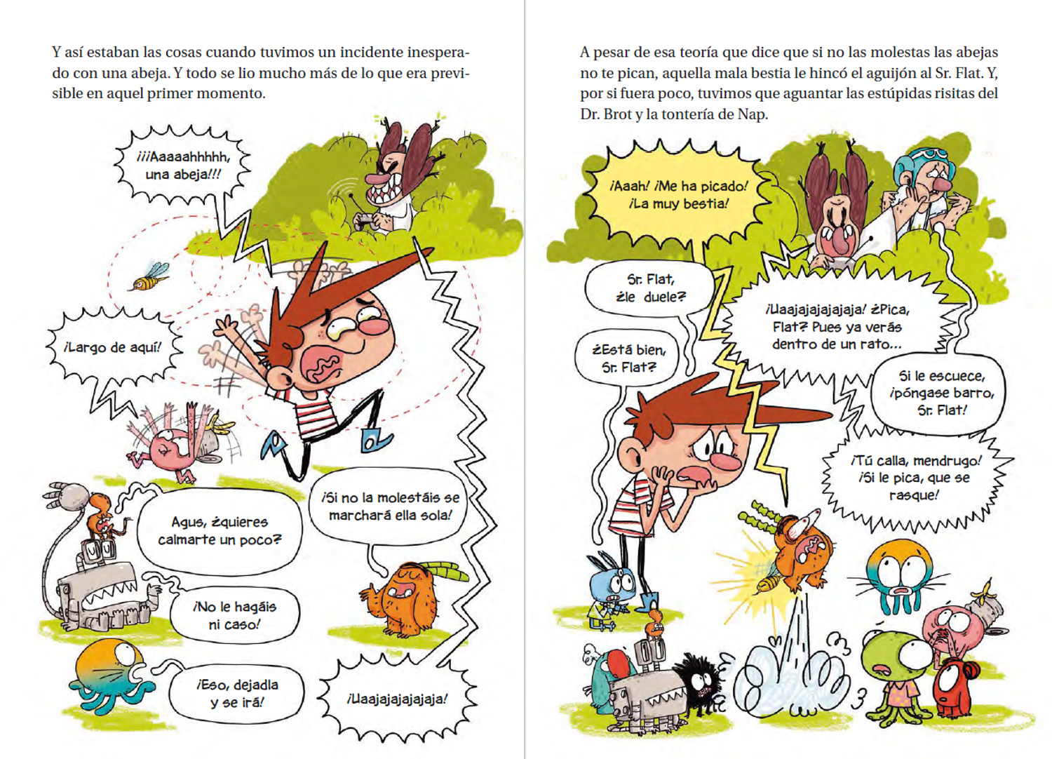 ¿Tú sabes qué es una abeja pántrax? Pues una abeja que si te pica estás perdido, porque lleva un veneno que hace que te vuelvas majara. ¿Que cómo lo sé yo? Pues porque no hace mucho el pobre Sr. Flat fue víctima de una de esas criaturas. Y ahora me preguntaréis: ¿y tiene remedio? Y yo os contestaré: ¡leed! Ah, y en esta aventura hay tres estrellas invitadas: ¡Dog, Boby y Pinchito, los monstruos ganadores del concurso Dibuja tu monstruo!