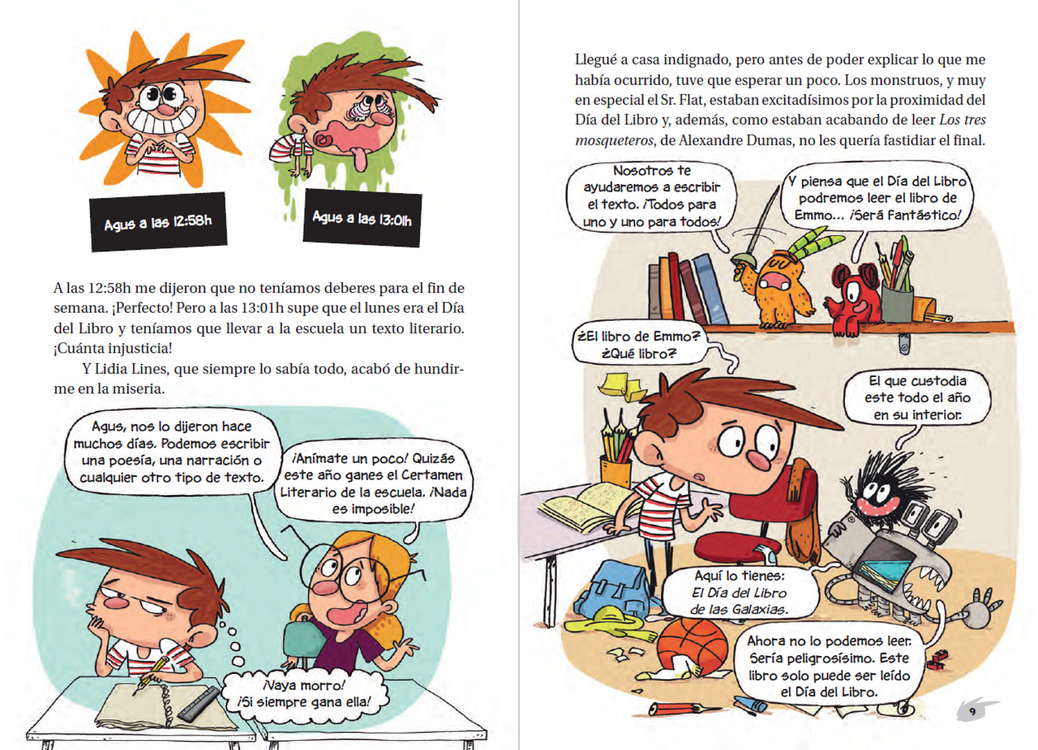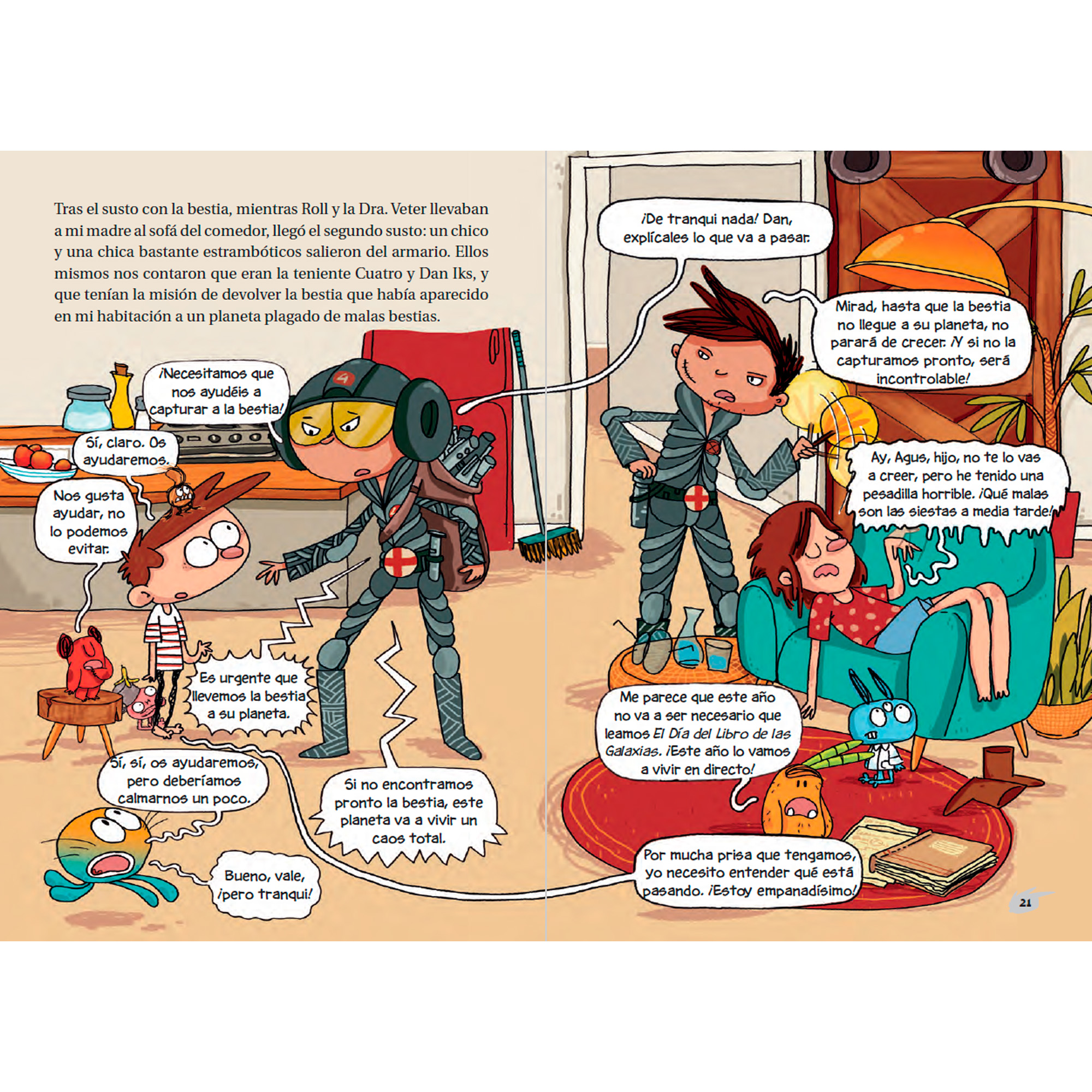 ¡Menudo Día del Libro, el del año pasado! La madre de Agus abrió un libro que no tenía que abrir y soltó sin querer a una especie de dragón de las galaxias que amenazaba con destruir la Tierra. Y para colmo, ¡el Dr. Brot y su ayudante Nap querían adoptarlo como mascota! Por suerte llegó del espacio la ayuda de la teniente Cuatro y Dan Iks. Regala este libro el 23 de abril y… ¡que la fuerza te acompañe!