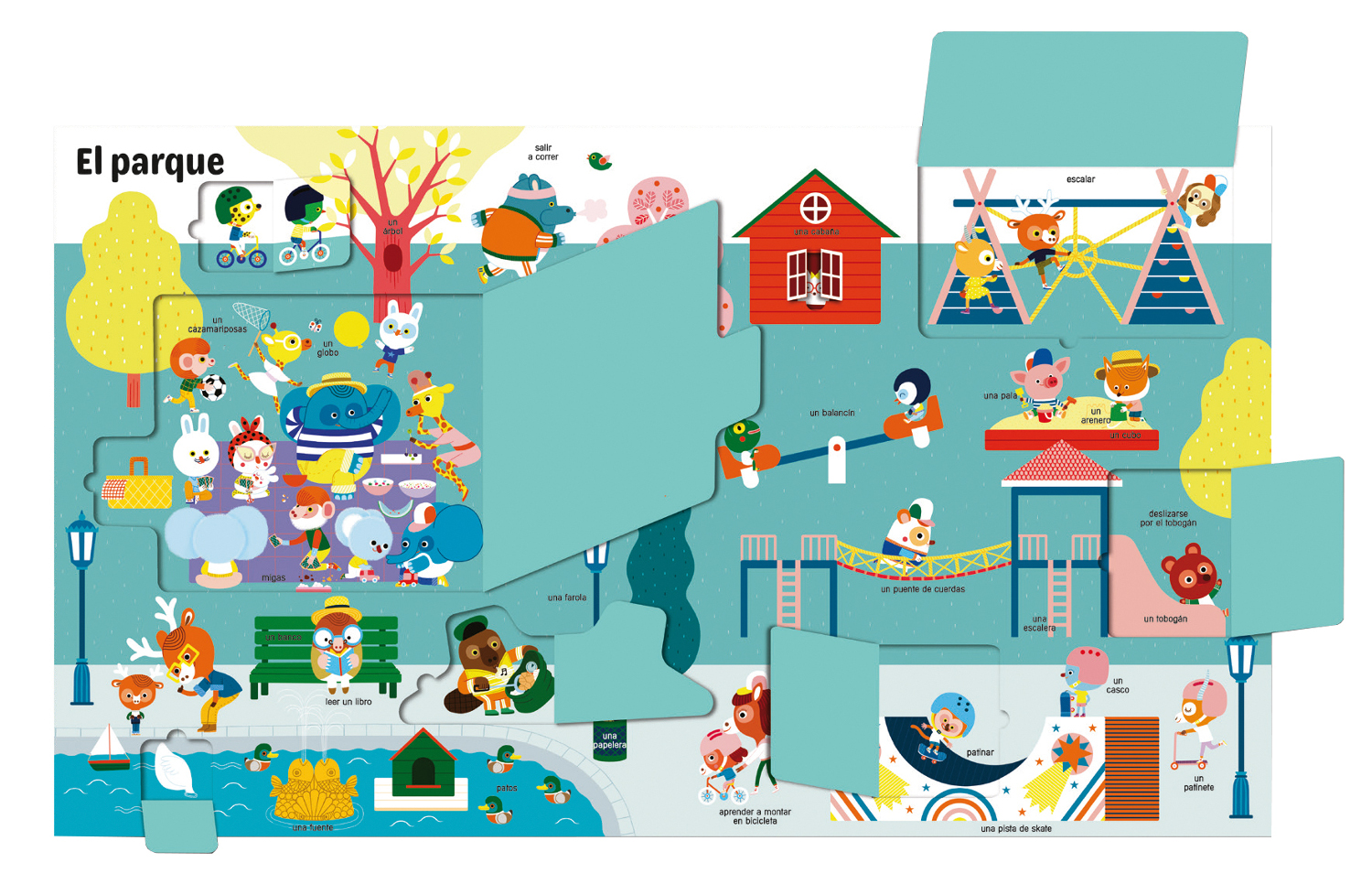 ¡Bienvenidos a la ciudad! Levanta las solapas para explorar todos sus rincones: abre las puertas de la tienda de juguetes, mira dentro de la comisaría de policía, acompaña a los novios hasta el coche, carga la basura en el camión… Descubrirás los principales lugares y actividades de una ciudad: el tráfico, las tiendas, el casco antiguo, el centro de salud, la seguridad y el parque.