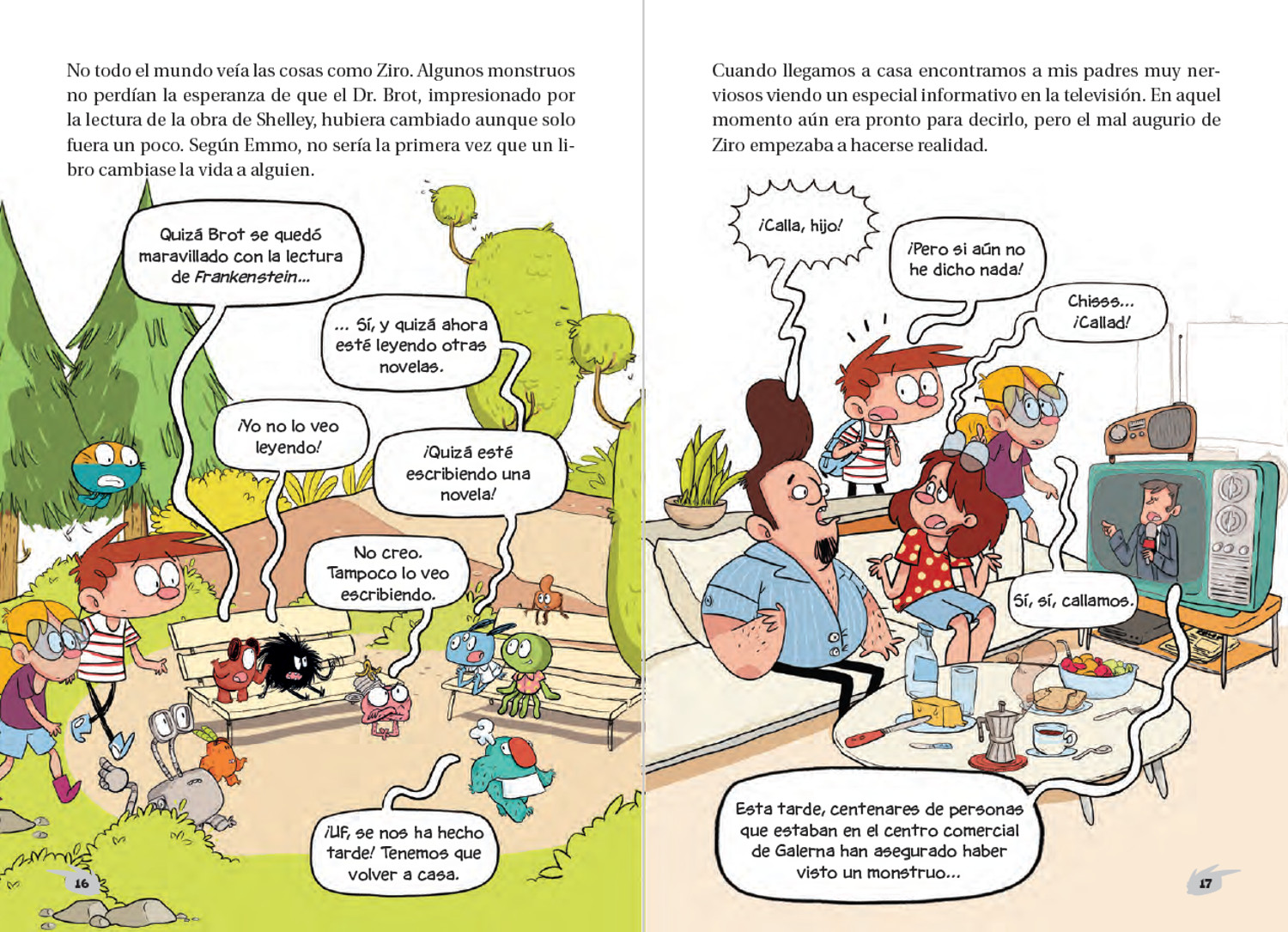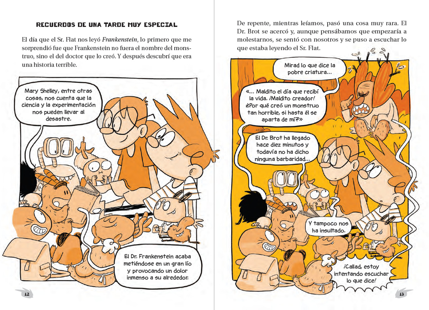 ¡Hola, soy Agus Pianola! Ya debes saber que con mis amigos, Lidia y los monstruos vivo todo tipo de aventuras. Por cierto, ¿conocéis la historia del Dr. Frankenstein? Pues, justo cuando el Sr. Flat nos la estaba contando, el Dr. Brot la oyó y tuvo una idea… Se puso a crear su propia criatura para sembrar el mal y el caos por todas partes. Este pobre ser recibió el nombre de Criatura y, aunque al principio nos daba un poco de miedo, no tardamos en comprender que debíamos ayudarlo. ¿Quieres saber cómo lo hicimos?