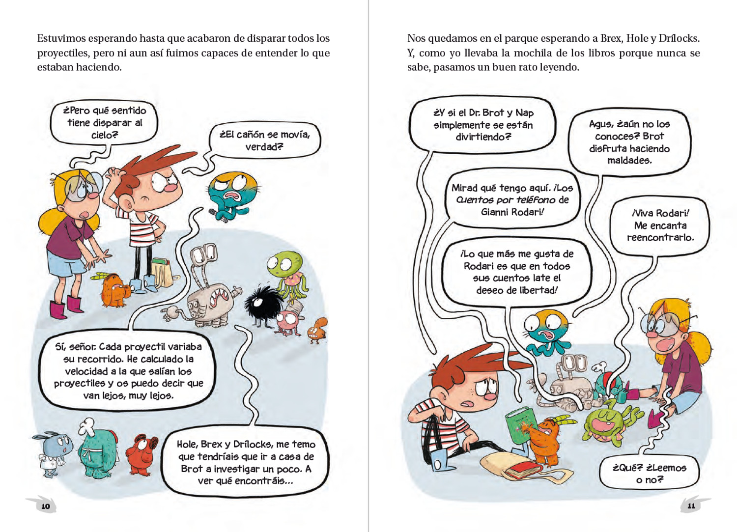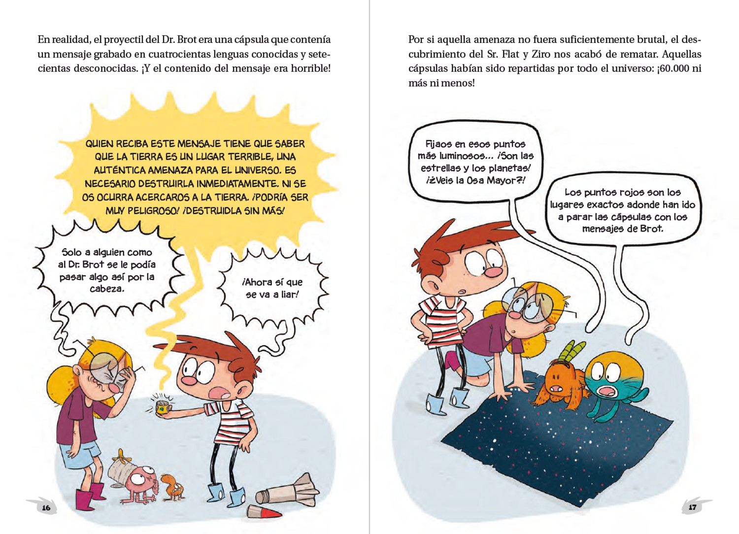 ¡Eh, hola! Soy Agus Pianola. Puede que ya me conozcas, ¿verdad? Entonces también sabrás que desde hace tiempo comparto lecturas y momentos extraordinarios con el Sr. Flat y su banda de monstruos. Esta vez, el Dr. Brot la ha liado muy gorda: se ha dedicado a lanzar proyectiles al espacio con un mensaje que dice que la Tierra es un lugar muy peligroso que hay que destruir. ¿Te lo imaginas? Suerte que los tres carteros del espacio todavía están en activo y nos ayudarán a interceptar esas peligrosas misivas. ¿Preparado? ¡Despegamos en misión espacial!