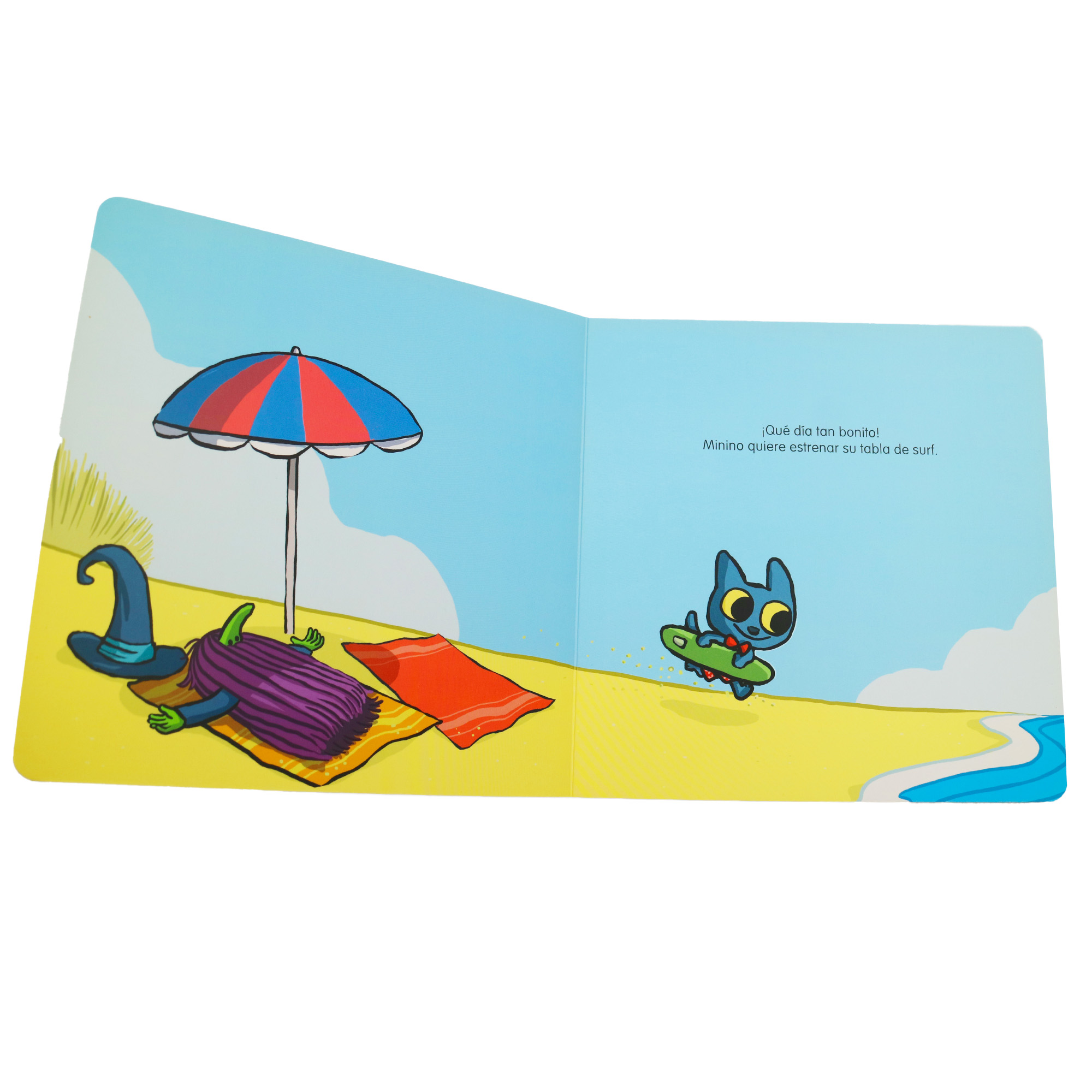 Un rato de surf en la playa es una buena ocasión para observar y maravillarse. Minino es un gato juguetón que mira el mundo con curiosidad. ¿Lo acompañas? Un libro con mecanismos móviles que nos descubre la magia de los pequeños momentos.