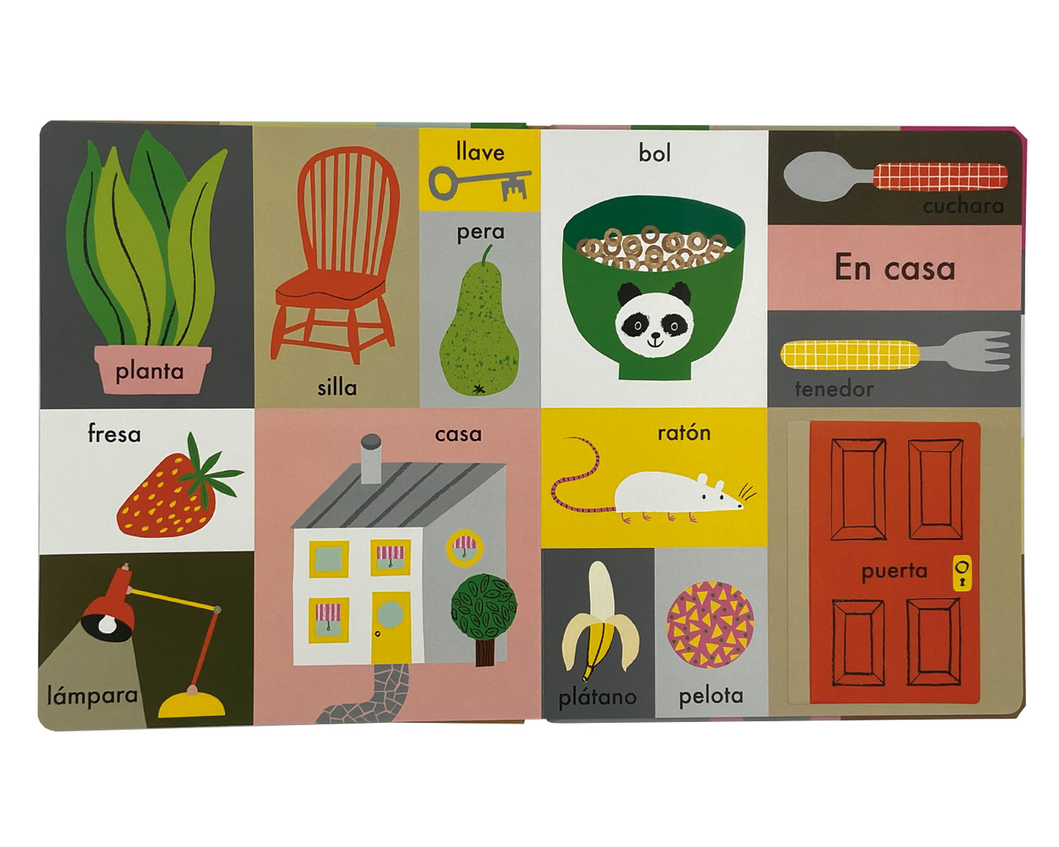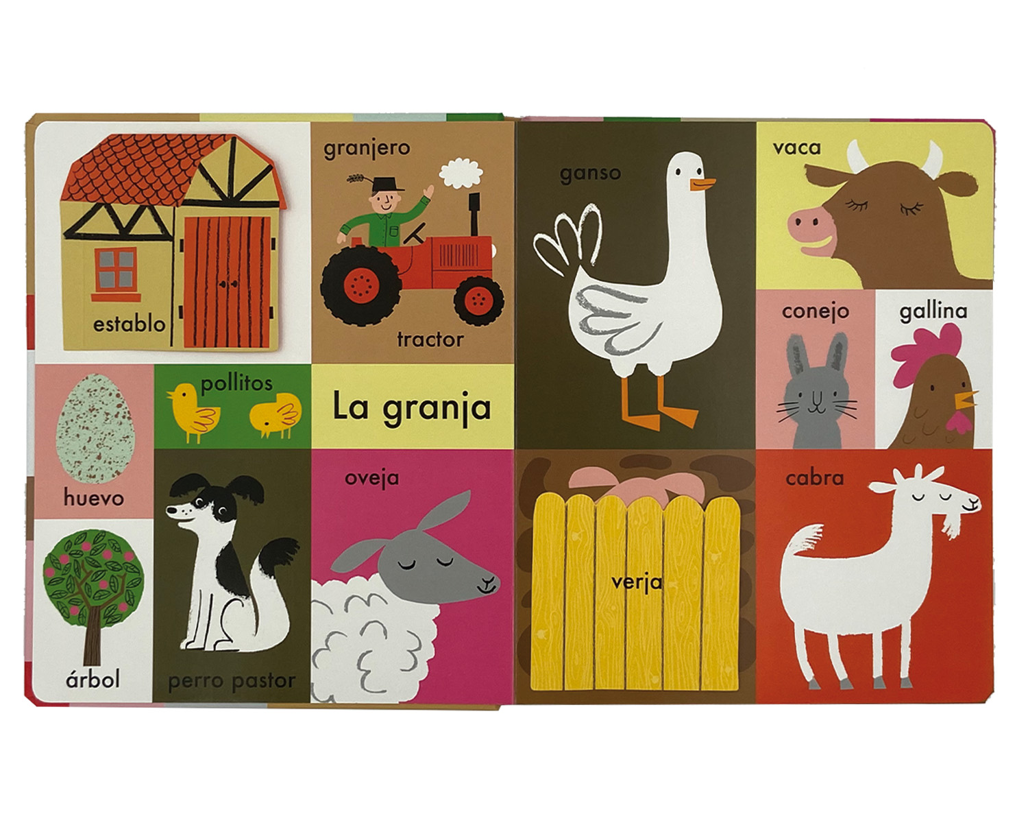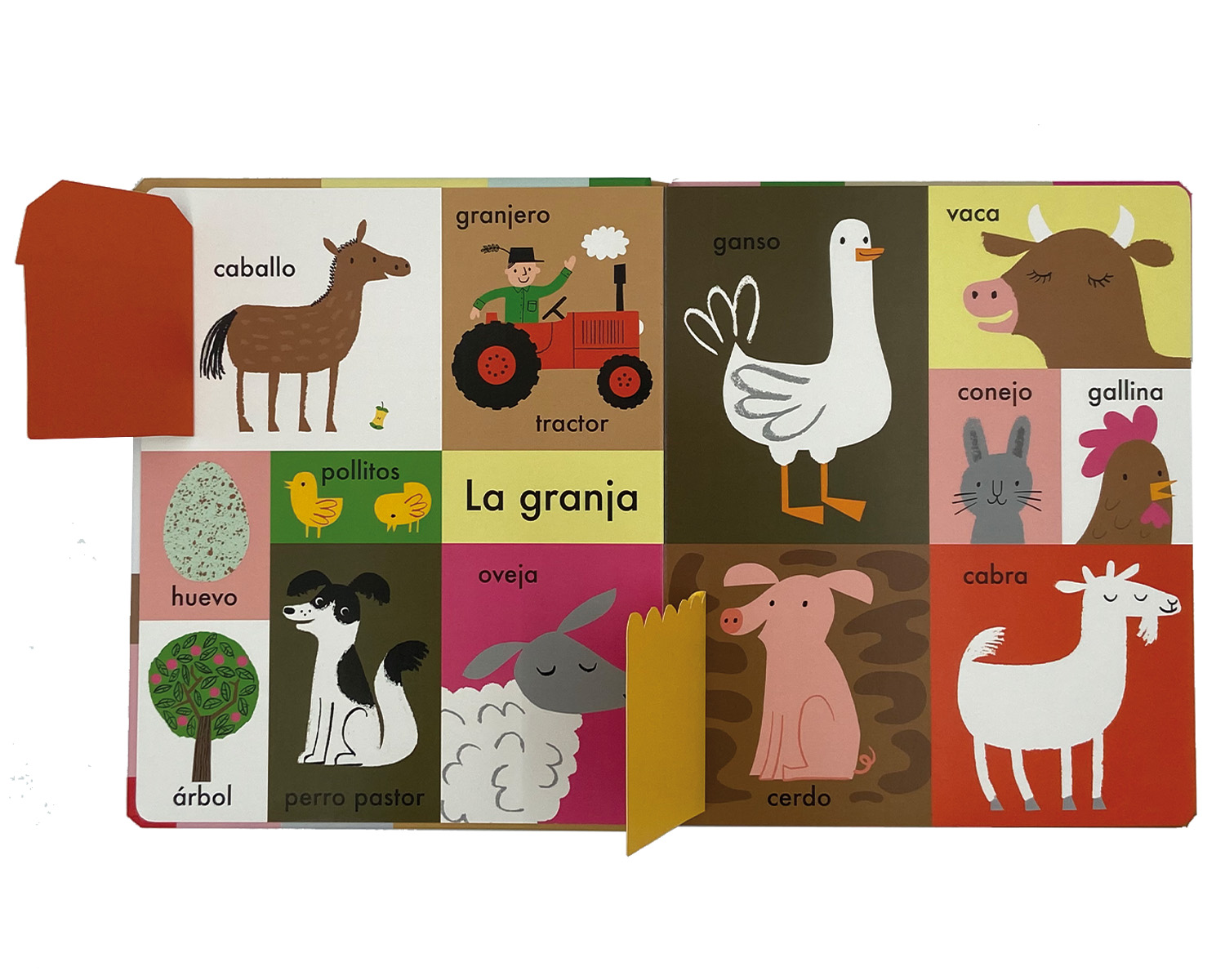 Un imaginario de gran formato con páginas resistentes que presenta las primeras palabras agrupadas por temas: la casa, la granja, los animales, los vehículos… Incluye algunas solapas para encontrar objetos escondidos.