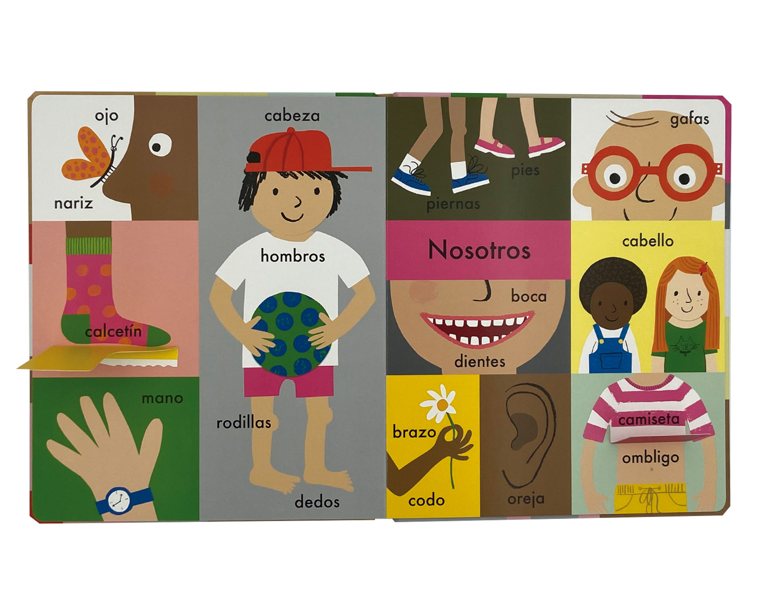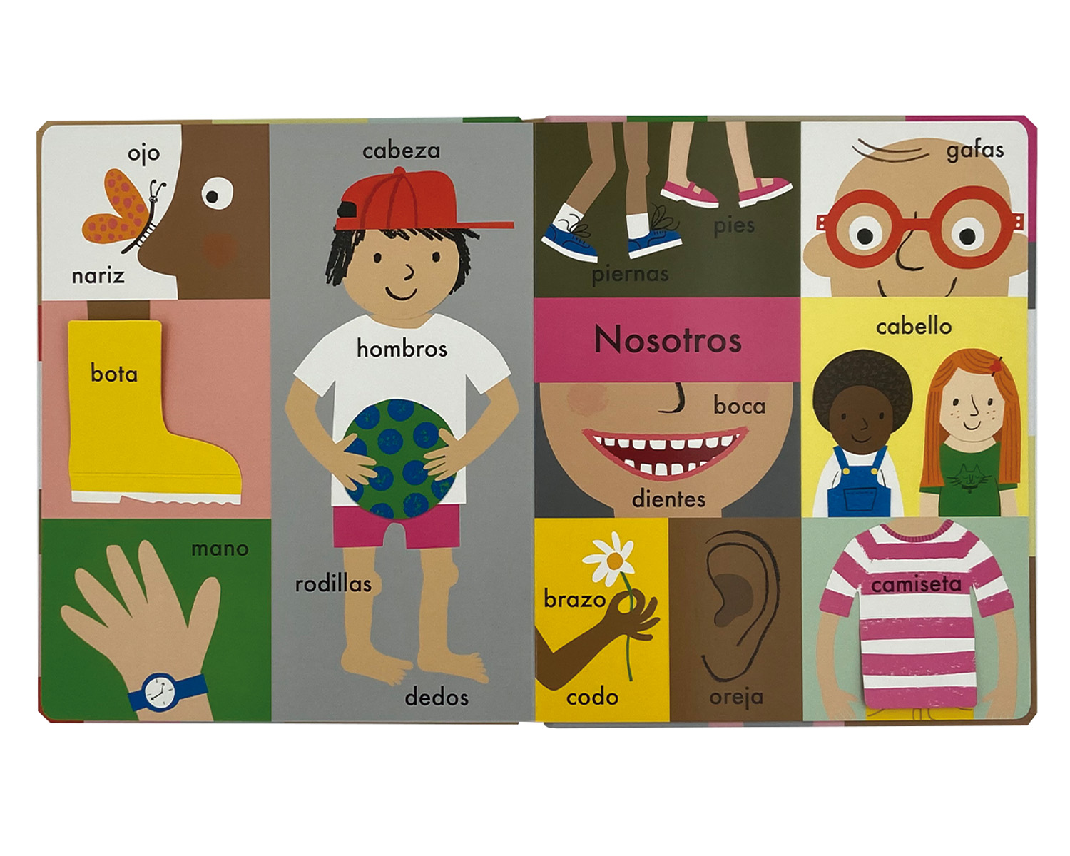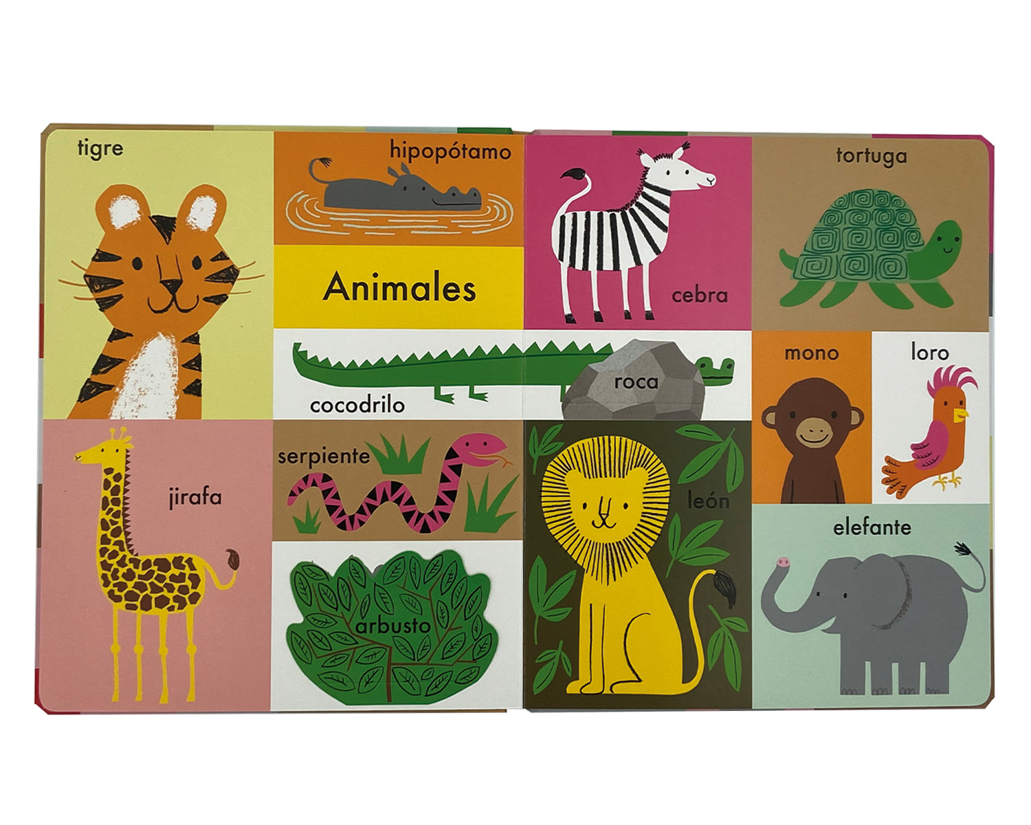 Un imaginario de gran formato con páginas resistentes que presenta las primeras palabras agrupadas por temas: la casa, la granja, los animales, los vehículos… Incluye algunas solapas para encontrar objetos escondidos.