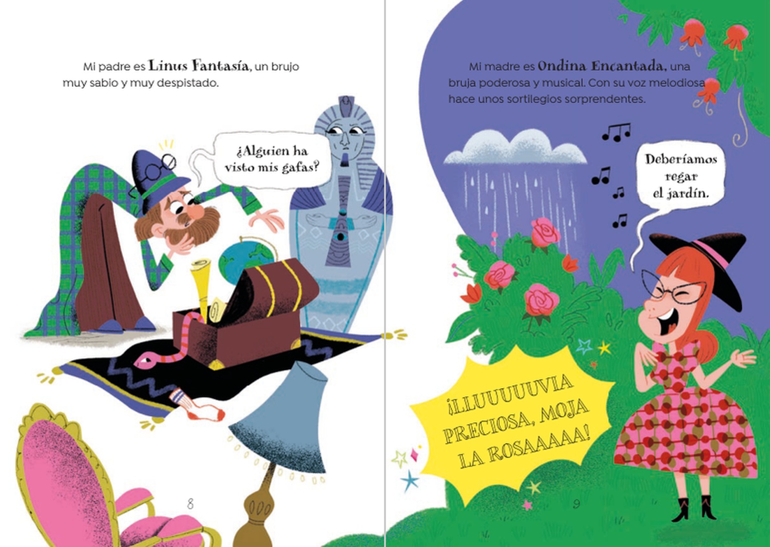 Mía vive en una casa extraña: su padre es un brujo despistado; su madre, una bruja poderosa y musical. Sus mascotas son un gato, un perro y un hámster azul que hablan. ¡Ah, y una araña que teje unas telas de araña espectaculares! Pero de eso no saben nada sus nuevos vecinos, los Casacuadrada, que son la personificación del orden y la limpieza. ¡Cómo se sorprenderá Lía, la más pequeña de la familia, cuando entre en el mundo de Mía y descubra la verdadera magia!