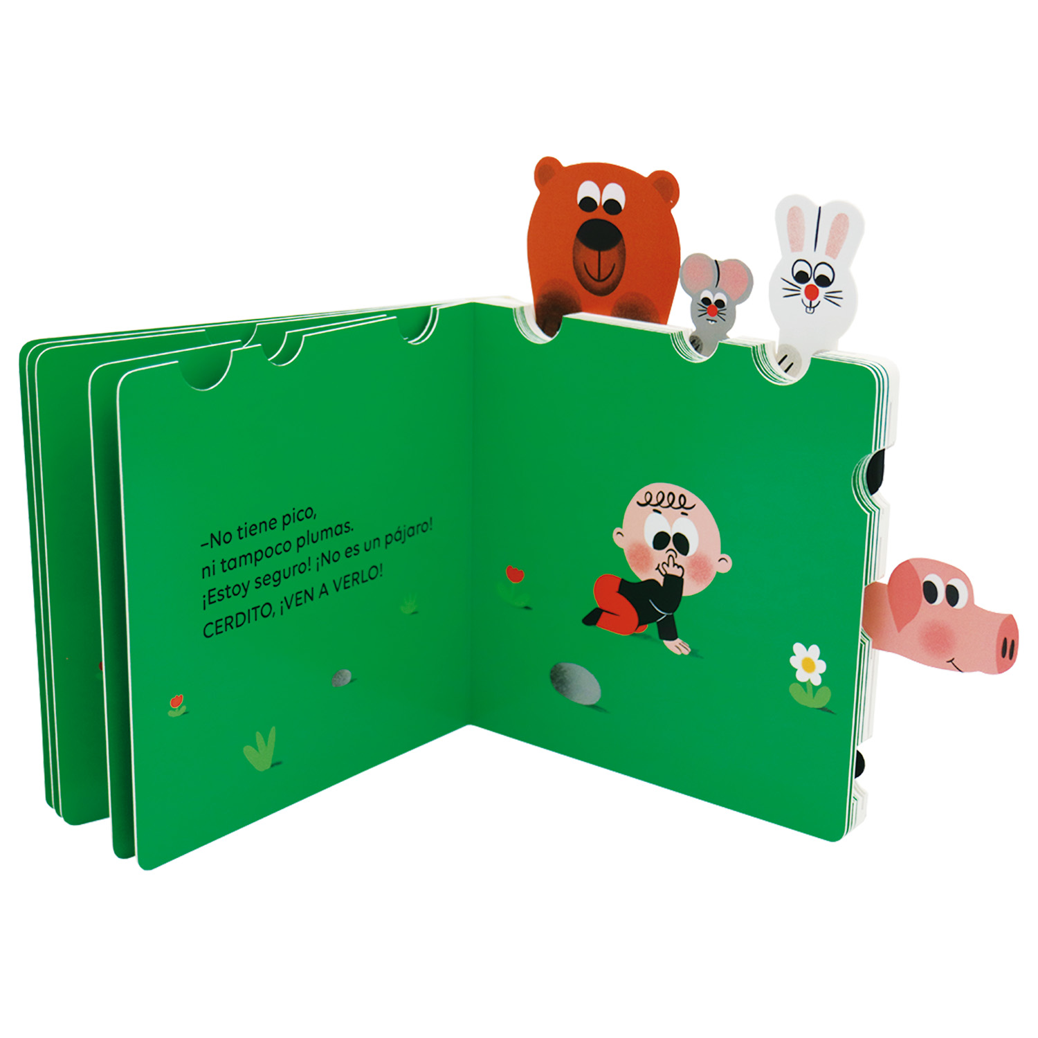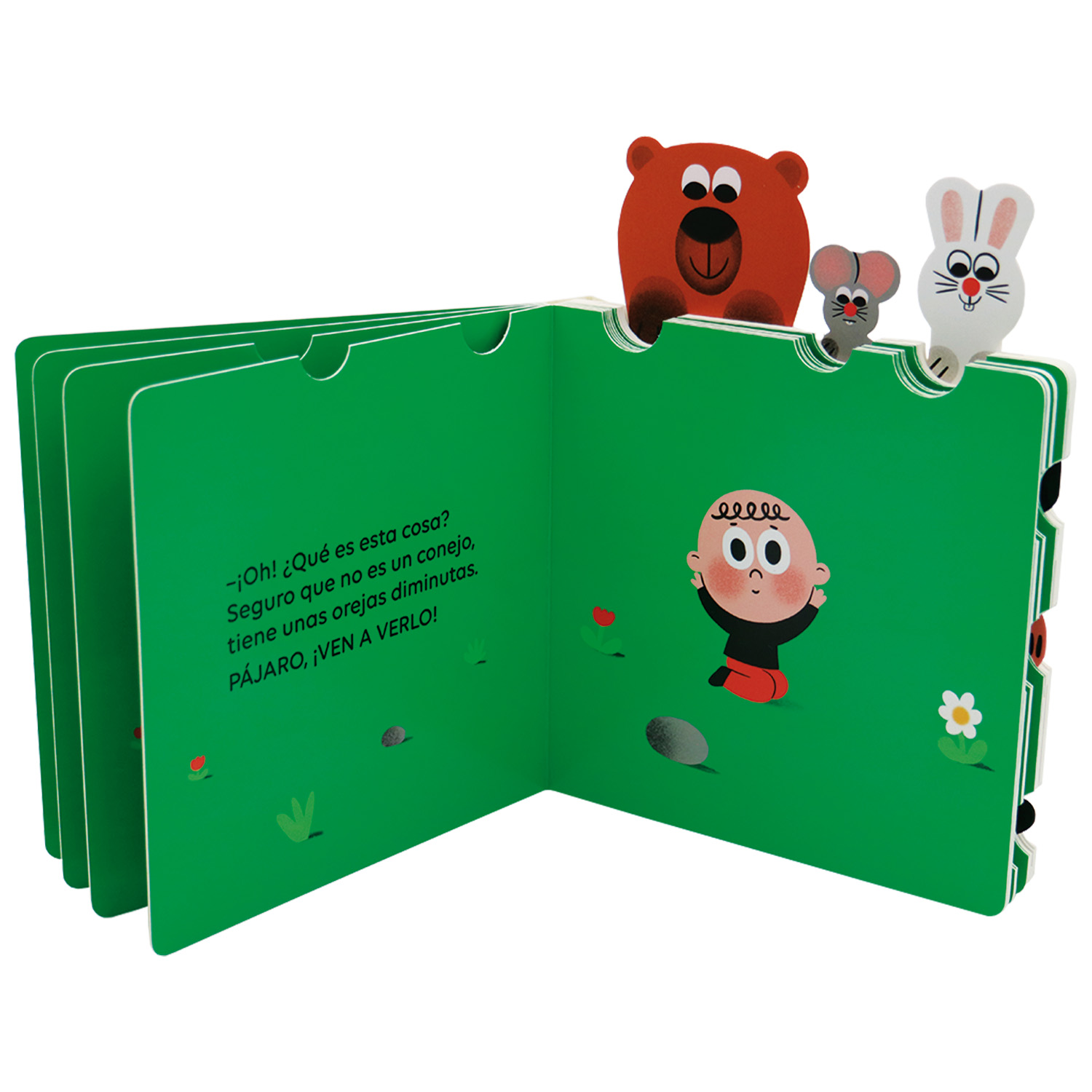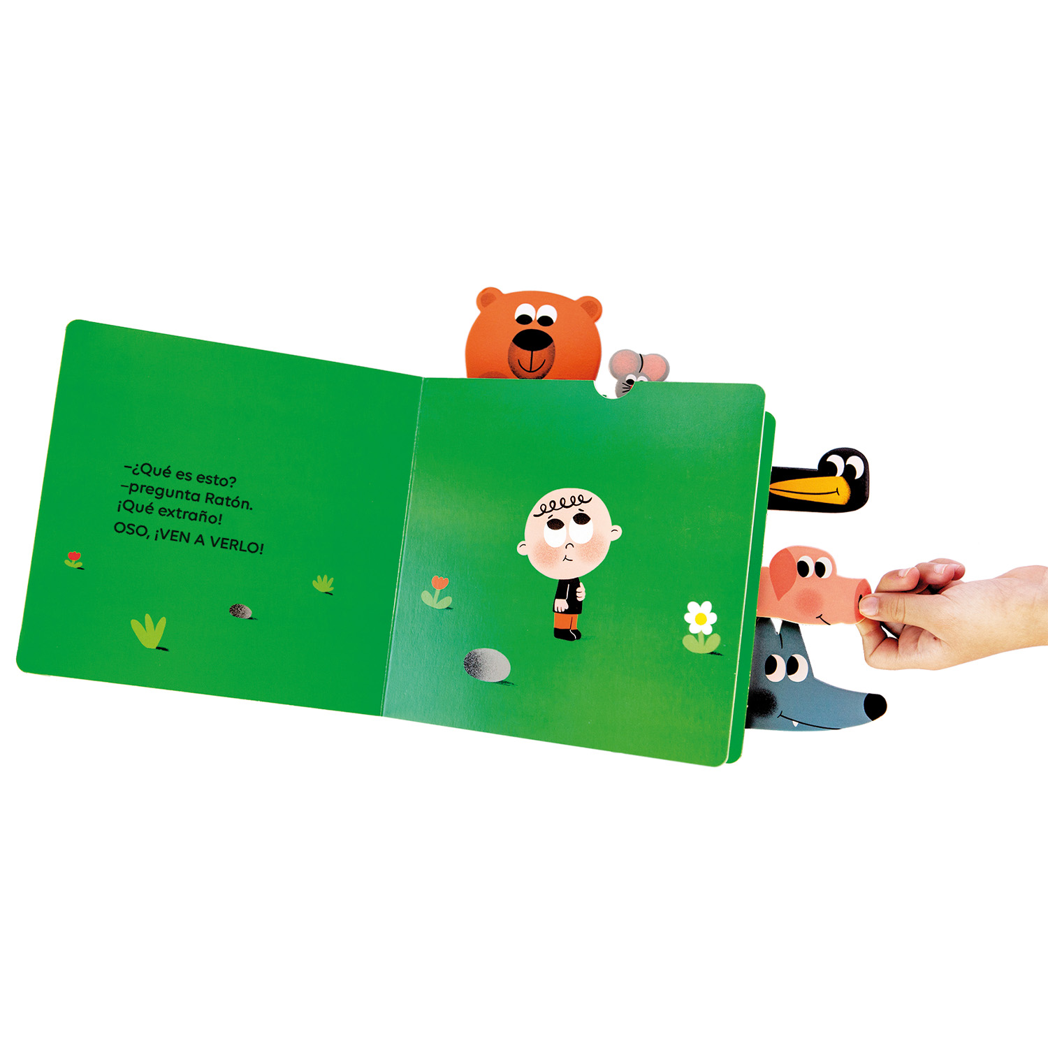 «Eh, amigos, ¡venid a verlo! ¿Qué es esto? ¡Qué extraño!» Un libro animado y con lengüetas para tirar con el que los niños y las niñas se divertirán para hacer aparecer los animales en cada doble página.