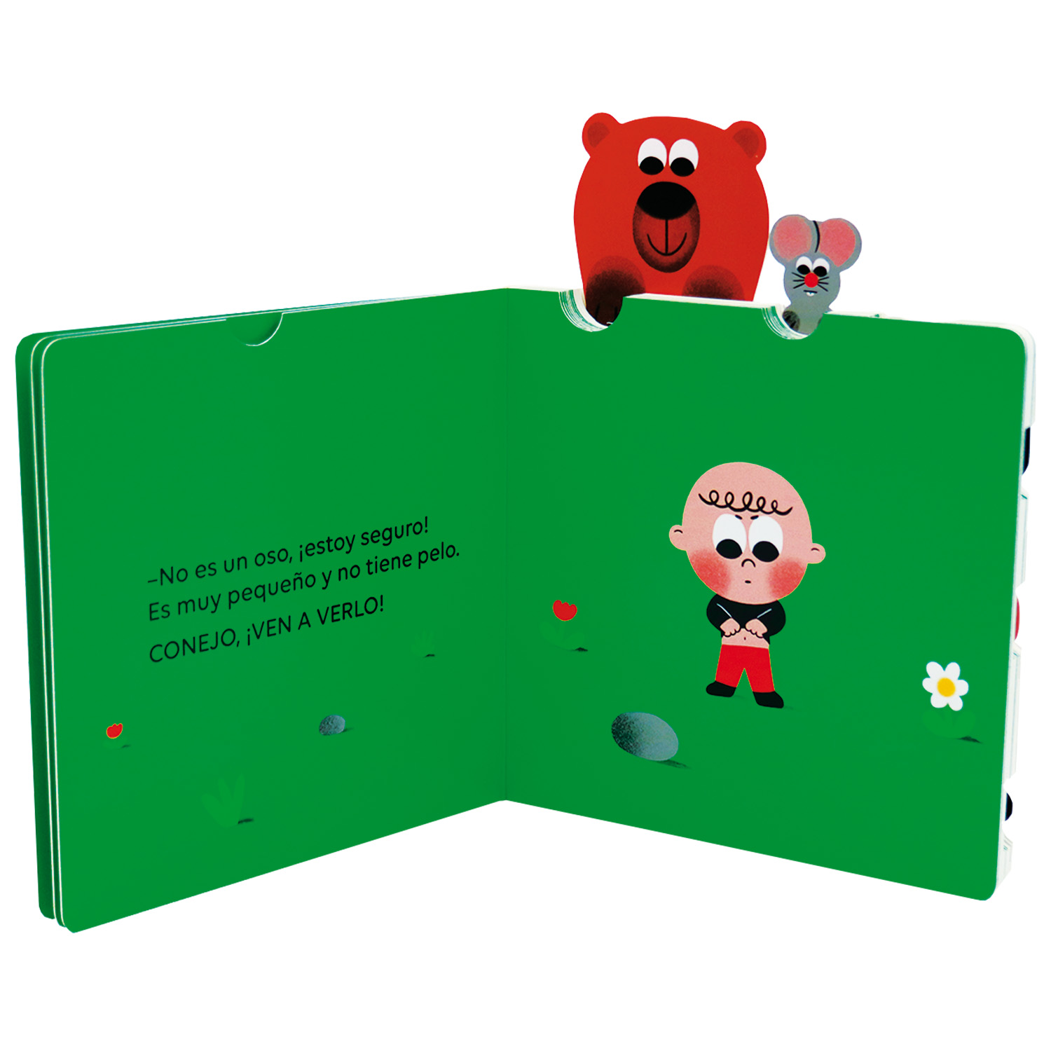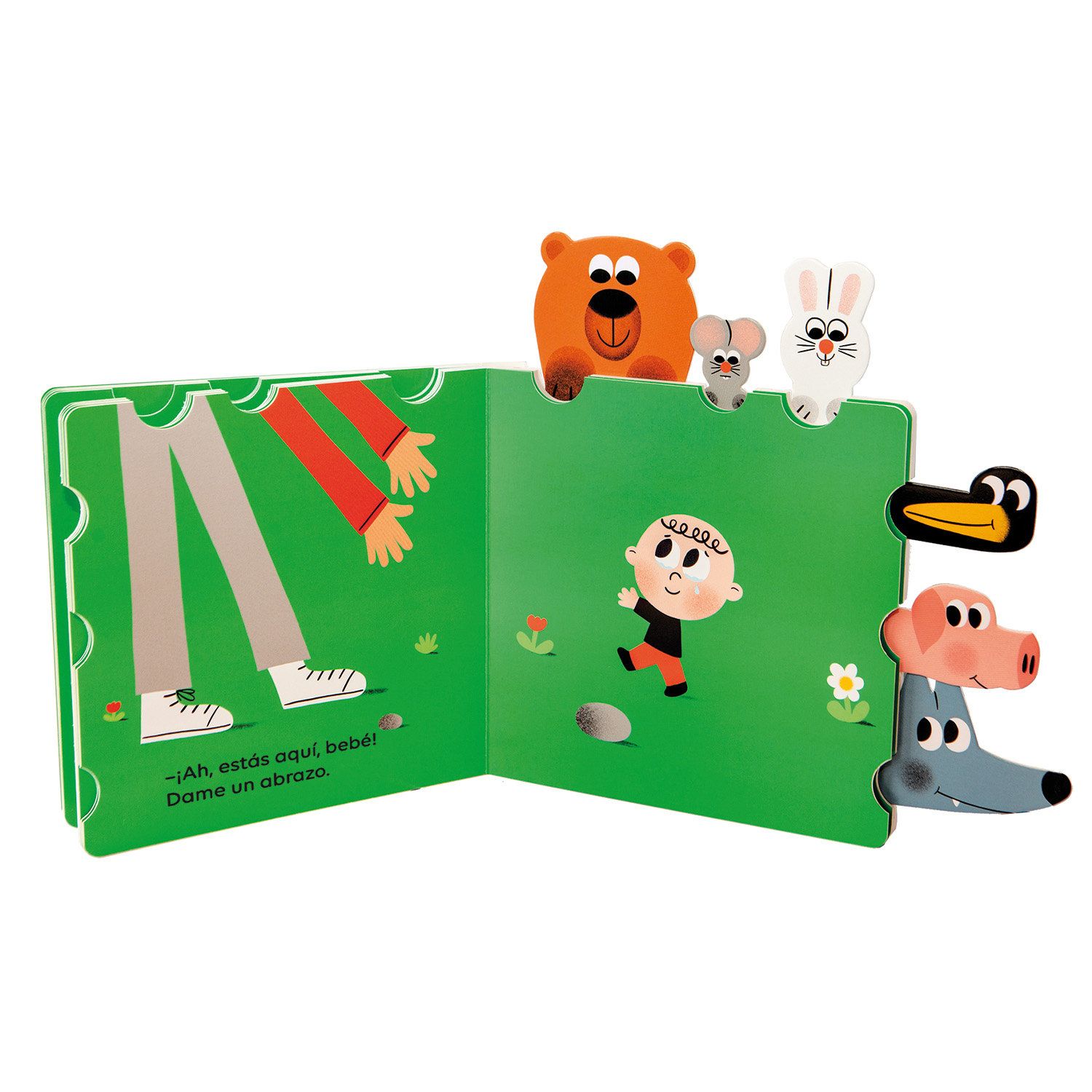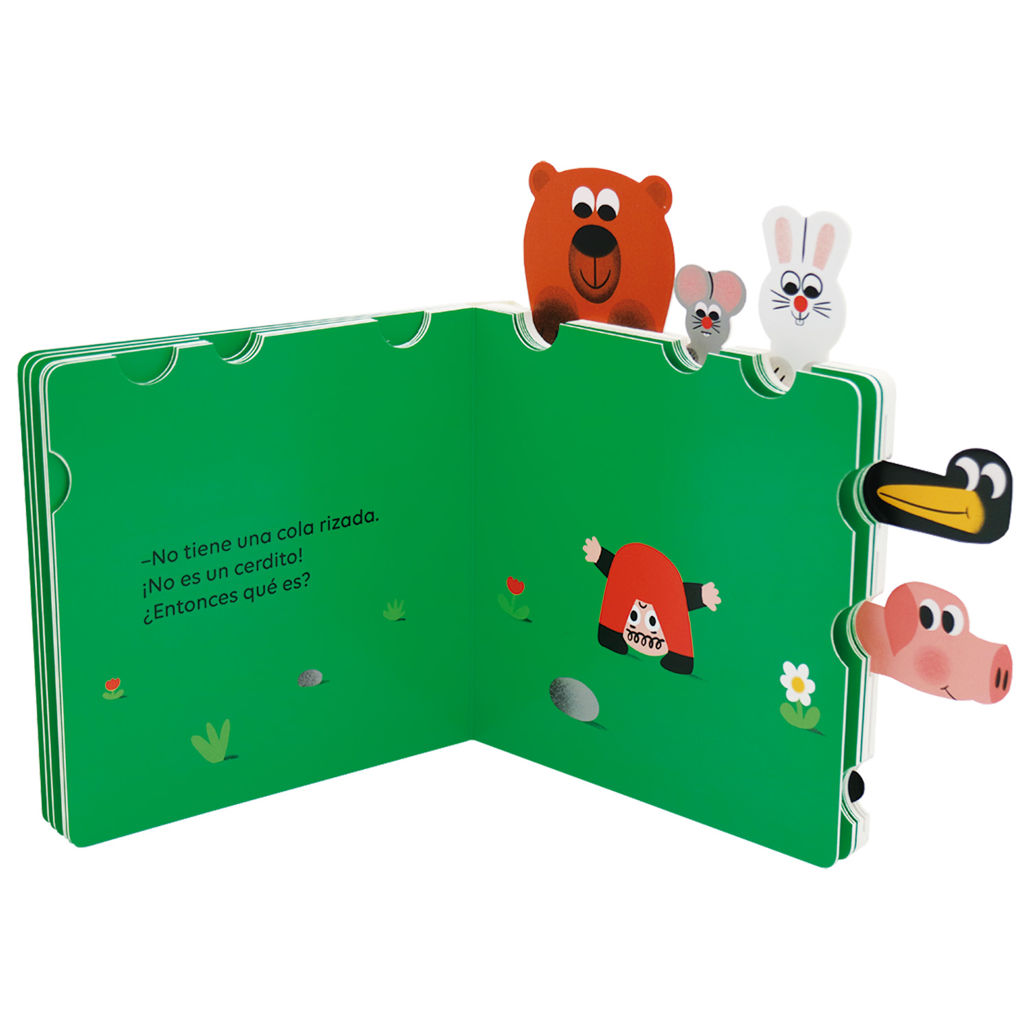 «Eh, amigos, ¡venid a verlo! ¿Qué es esto? ¡Qué extraño!» Un libro animado y con lengüetas para tirar con el que los niños y las niñas se divertirán para hacer aparecer los animales en cada doble página.