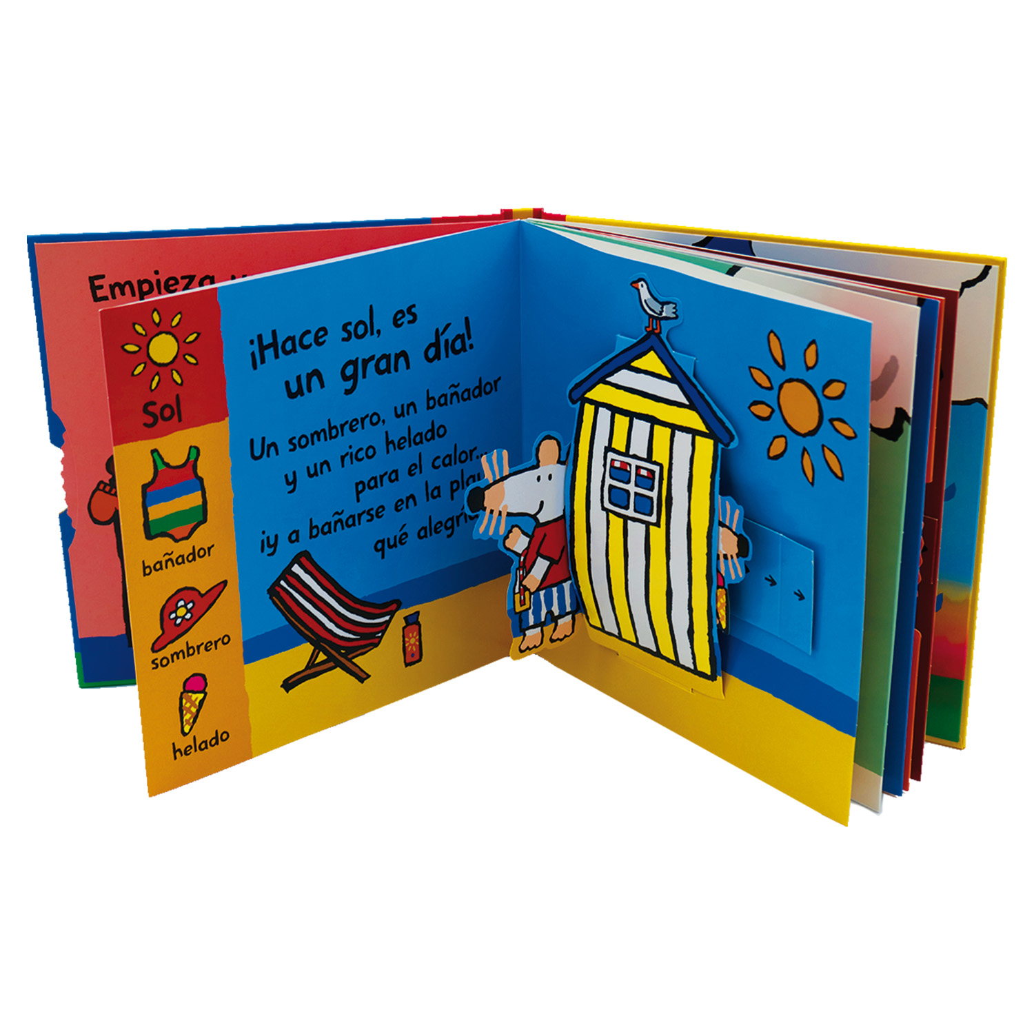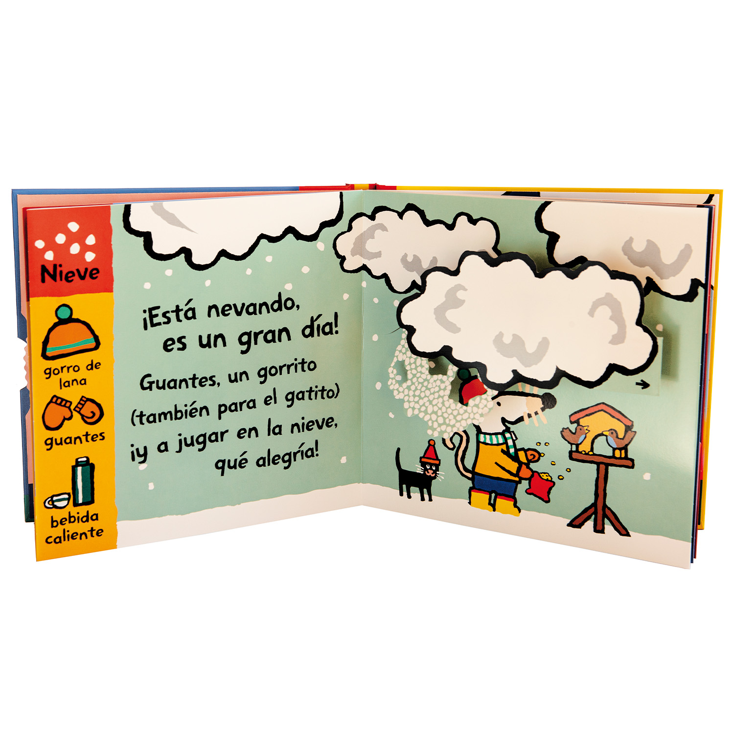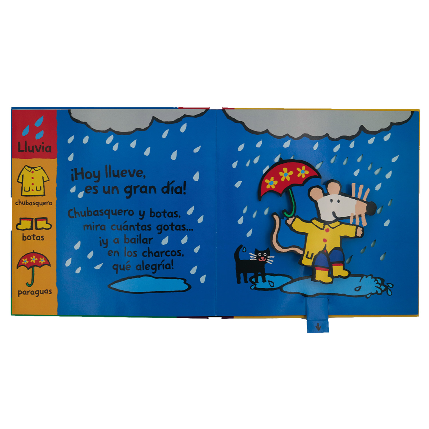 Sea un día de nieve, de lluvia o de sol, Maisy siempre se divierte, y éste es un libro que traerá la luz del arco iris a los días más aburridos. Repleto de ingeniosos pop-ups y de mecanismos de lengüeta, este es un texto educativo, haga el tiempo que haga.