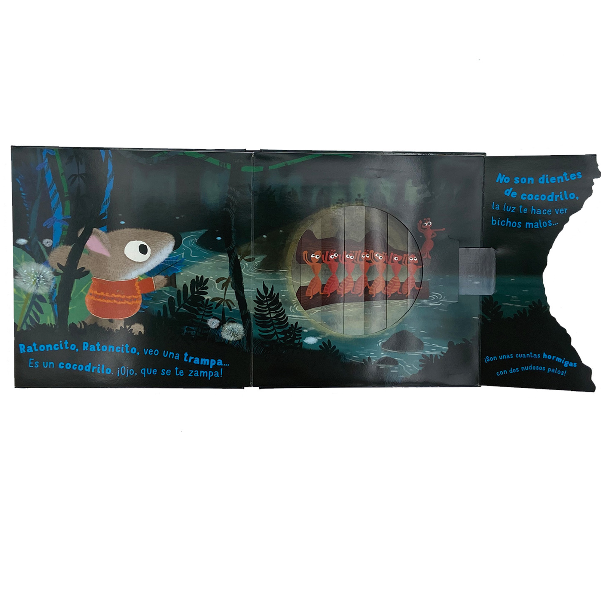 Una noche de luna llena, un camino por el bosque y una misión para un pequeño ratoncito: llevar un cesto de comida a su abuela, que vive al final del camino. ¡Pero de noche todas las sombras son sospechosas! Un libro ilustrado con solapas y lengüetas que nos descubrirán qué se esconde realmente tras estas sombras.