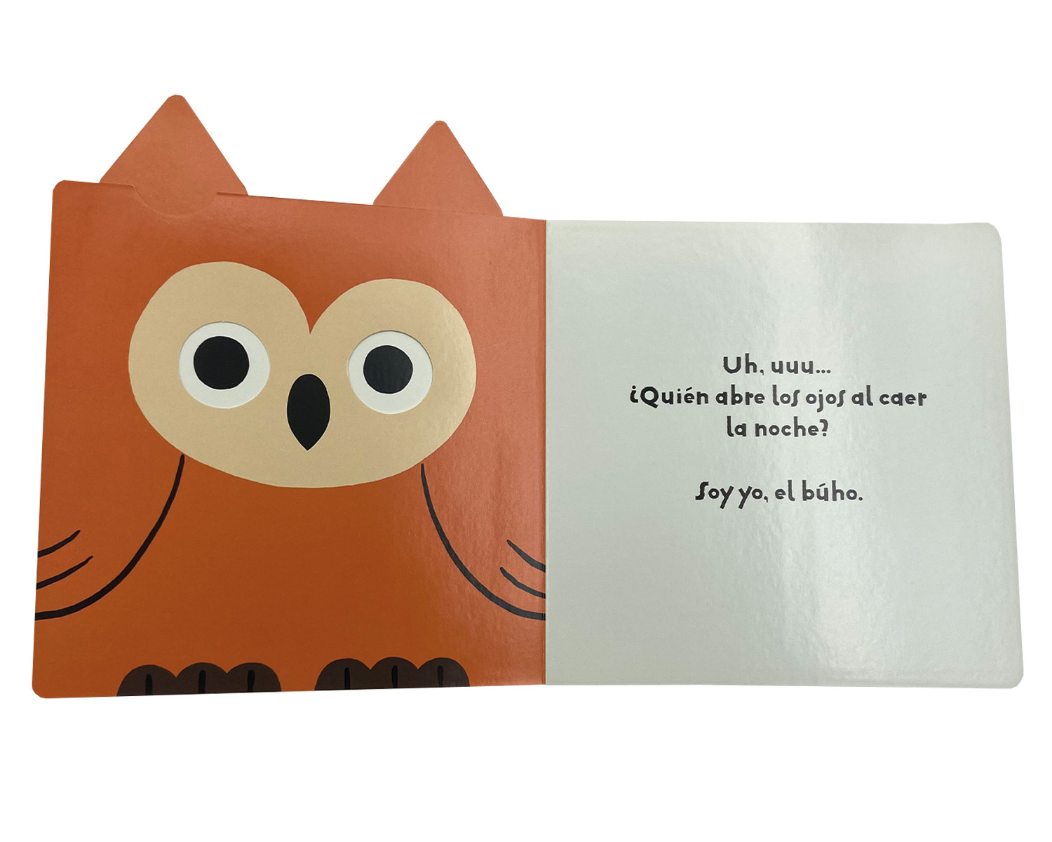 Uh, uuu… ¿Quién abre los ojos al caer la noche? ¡Ñam-ñam! ¿Quién mordisquea zanahorias sin parar? Te toca a ti adivinarlo moviendo las lengüetas de este libro con sorpresas. ¡La manera más lúdica de descubrir a los animales!
