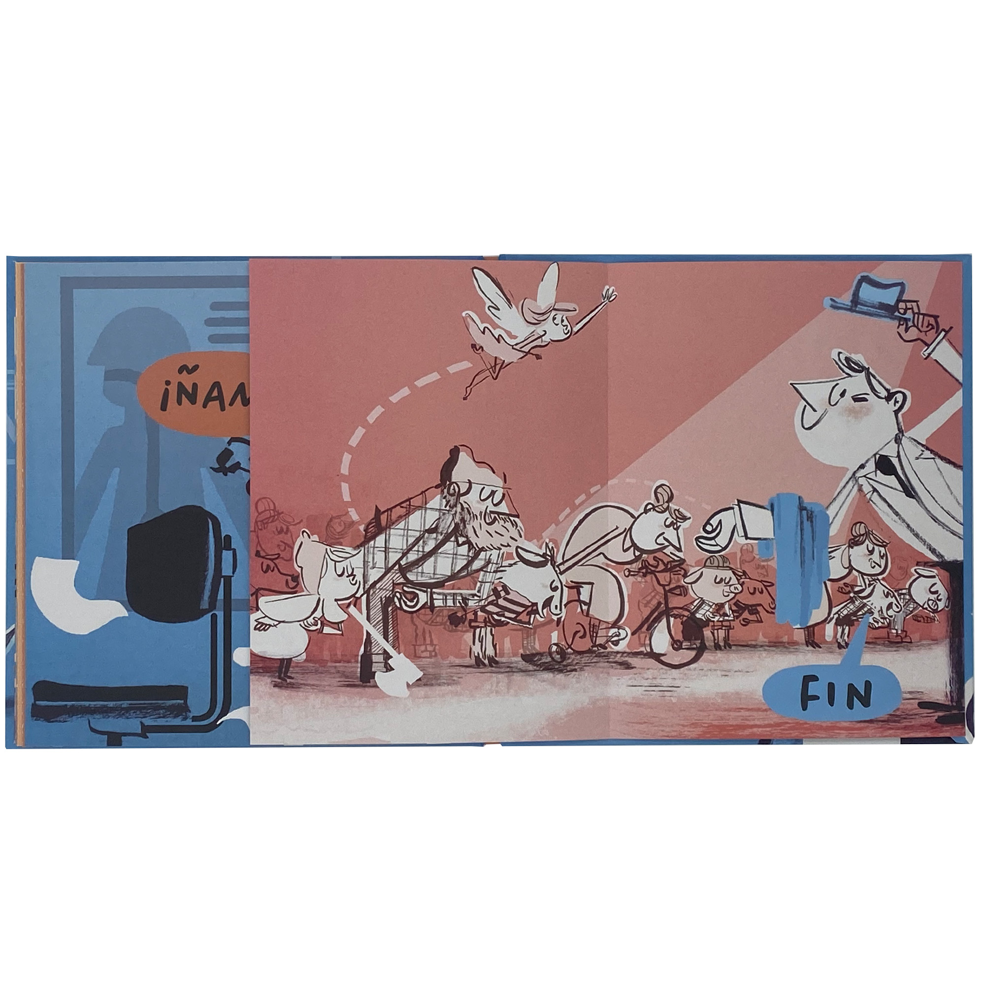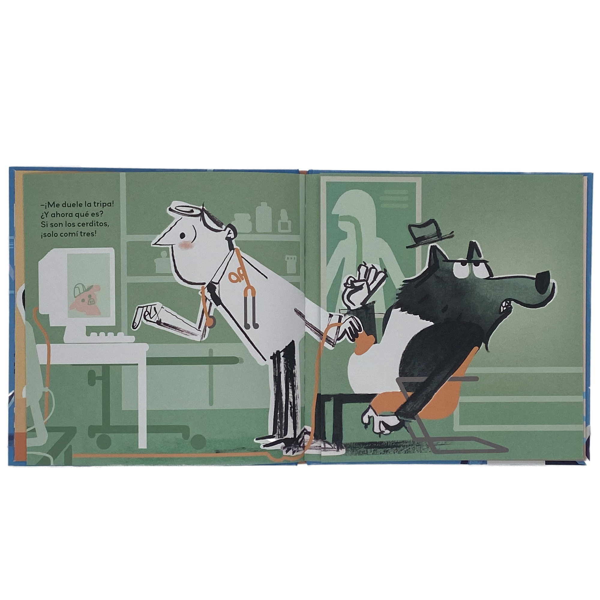 Lobo tiene dolor de tripa, el médico lo examina. –Pero, ¡si no comí nada! –dice ofendido–. Tal vez… ¿unas cuantas hadas? –¿Y ese barullo? ¡Si son los tres cerditos! ¿Y estas abuelas de dónde salen…? El médico se sorprende con toda la tropa. ¡Levanta las solapas para desvelar quién se esconde en su enorme barriga!