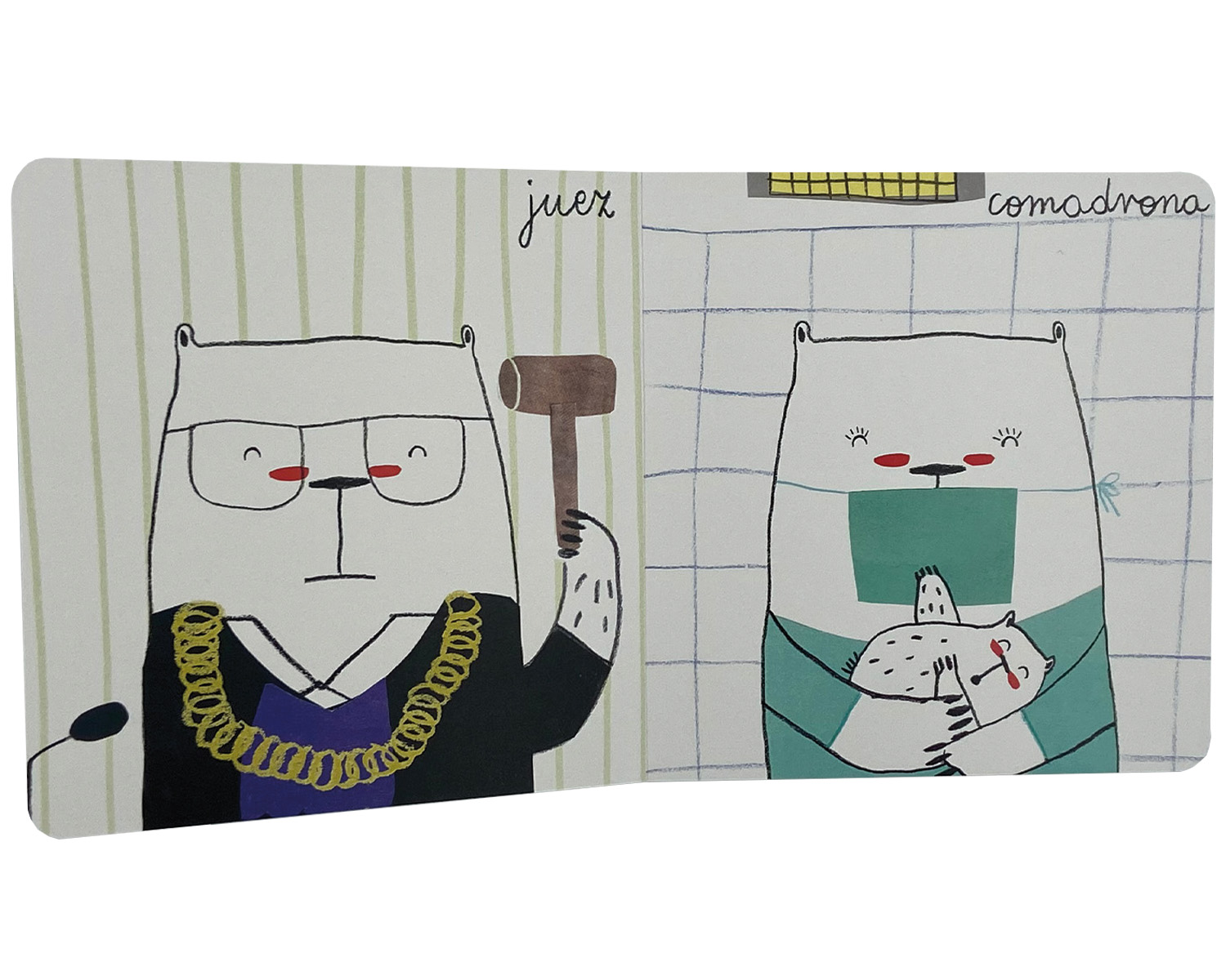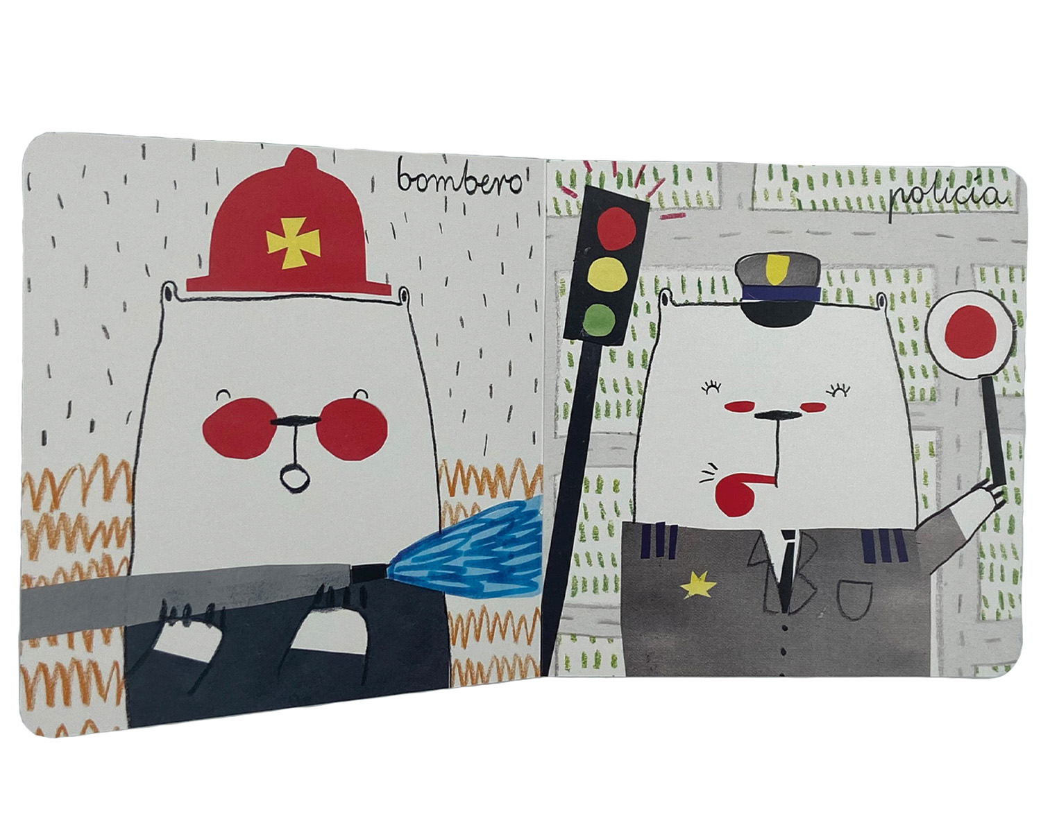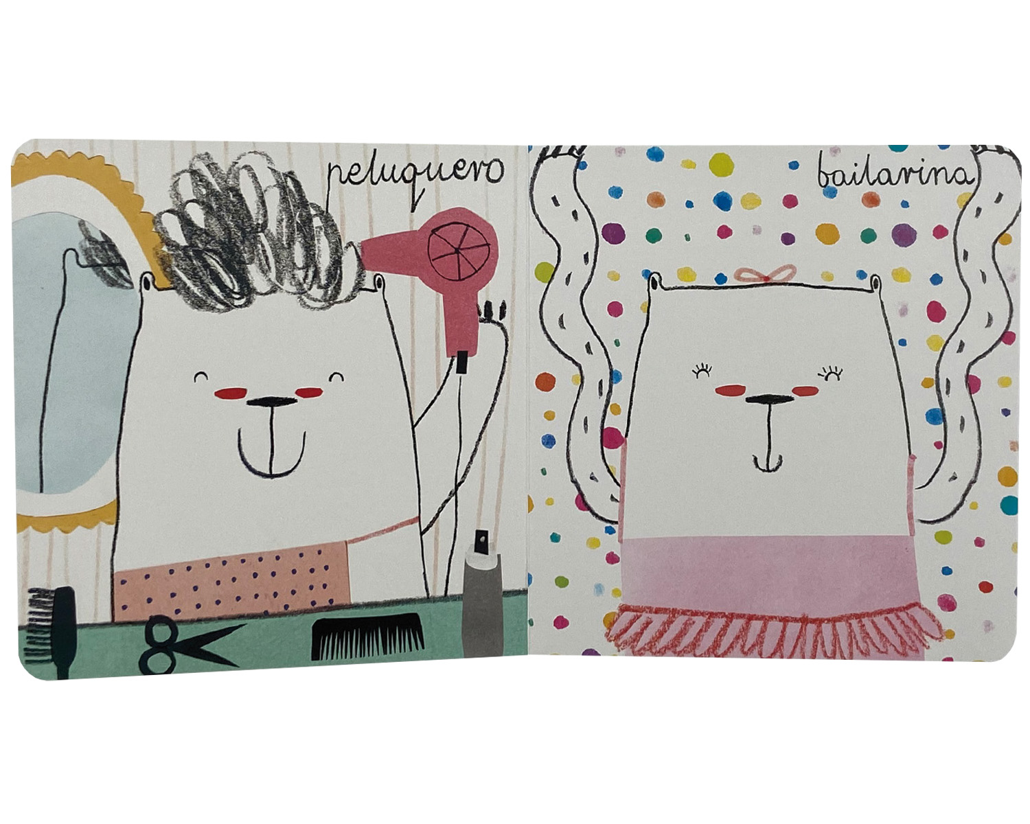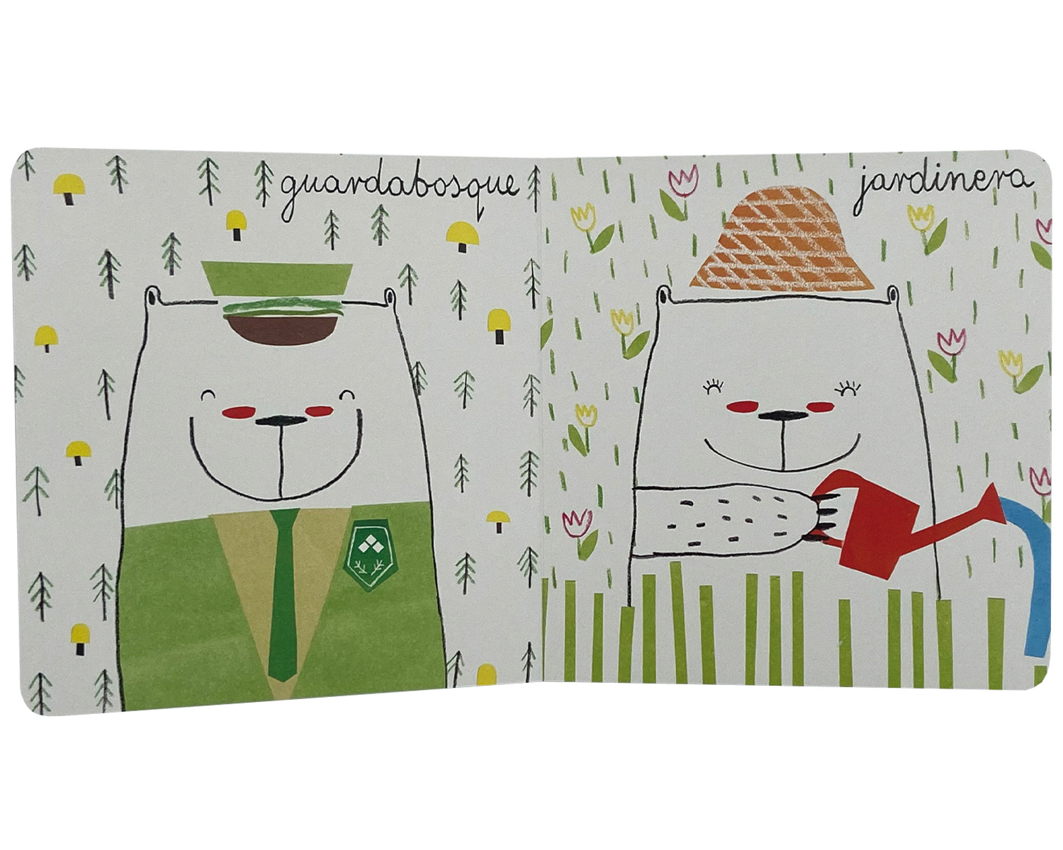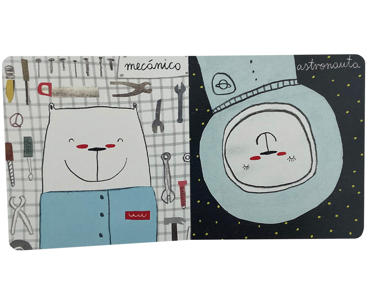 ¿Qué te gustaría ser de mayor? Campesino, bombero, pintora… En este título, los niños y las niñas encontrarán un montón de oficios representados por unos osos muy trabajadores. Un libro todo cartón con los nombres de las profesiones en letra manuscrita, y dibujos a lápiz y collage.