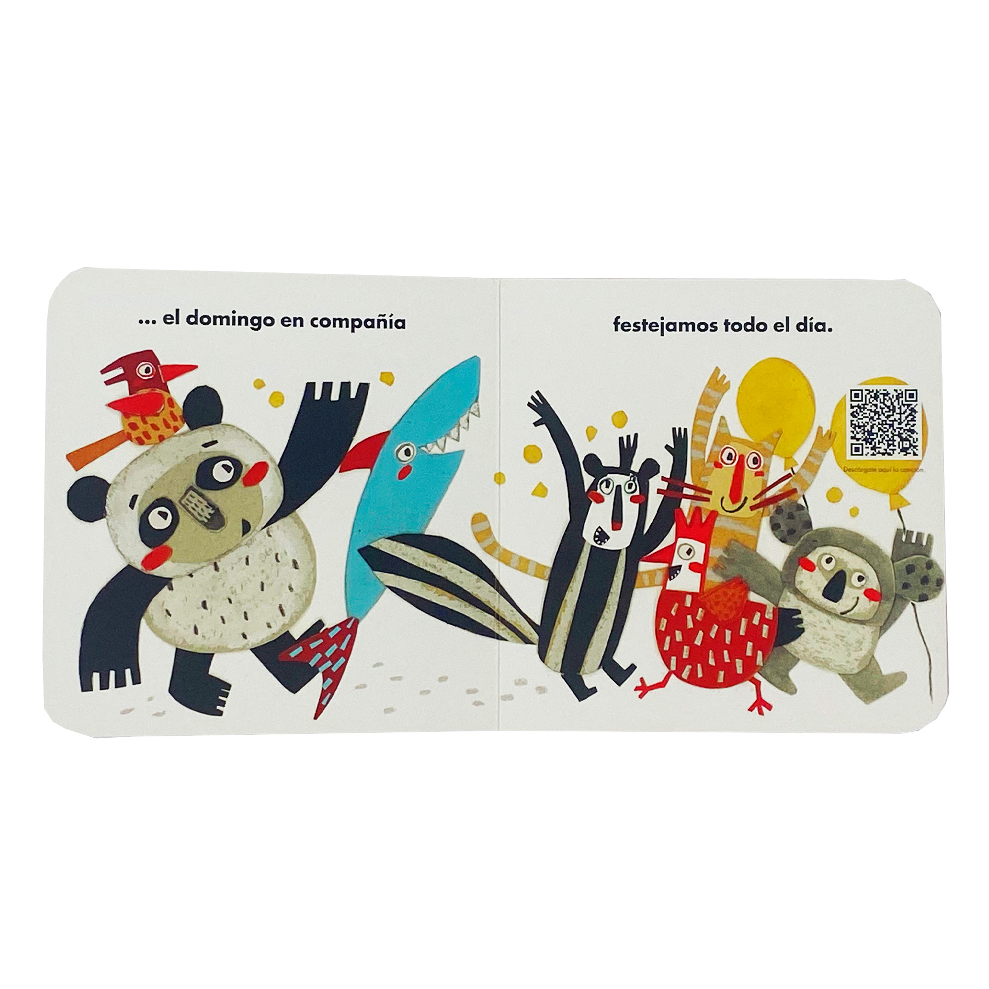 Una colección de cuentos que recupera la tradición oral de las narraciones y los juegos de regazo con textos poéticos adecuados para los más pequeños y un formato todo cartón con solapas. El libro presenta, de forma divertida, los días de la semana. En la última página se incluye un código QR para descargar la canción.